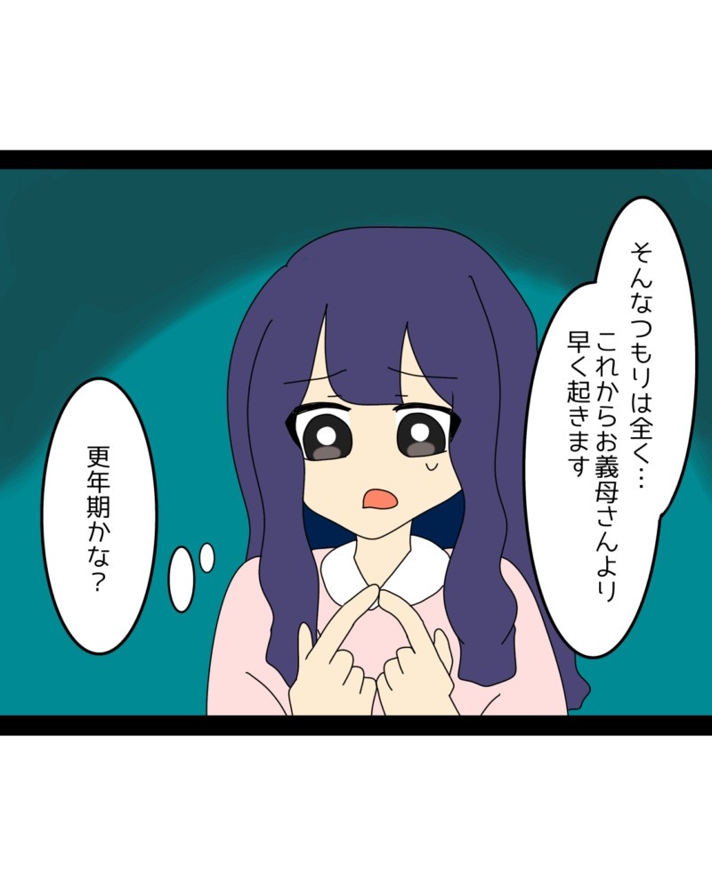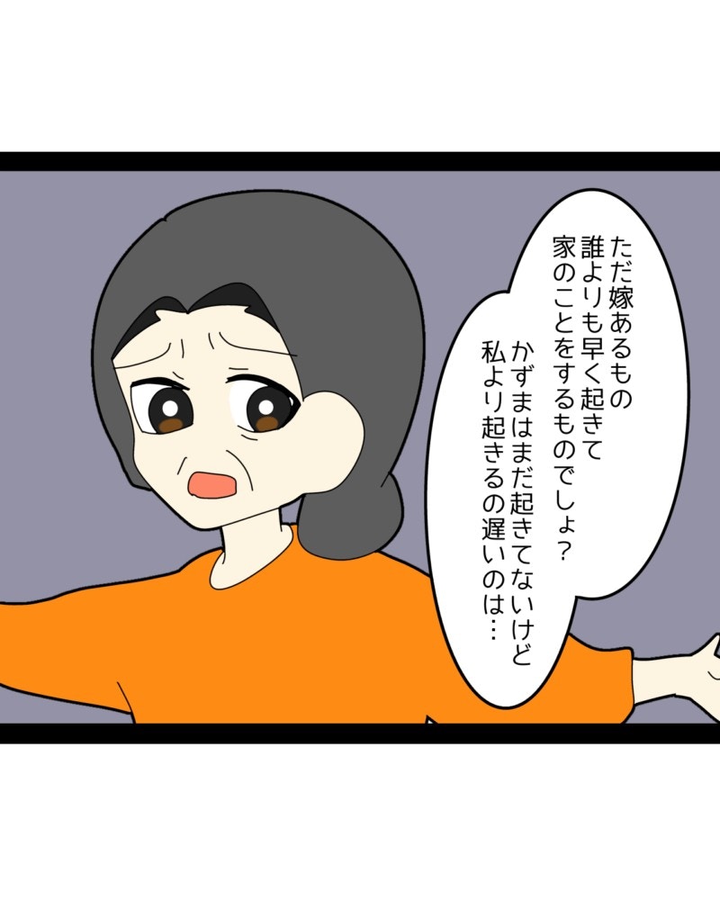 嫁は誰よりも早く起きて家のことをするものだと言う義母。みゆさんが自分よりも遅く起きてきたことが気に食わないようですね。