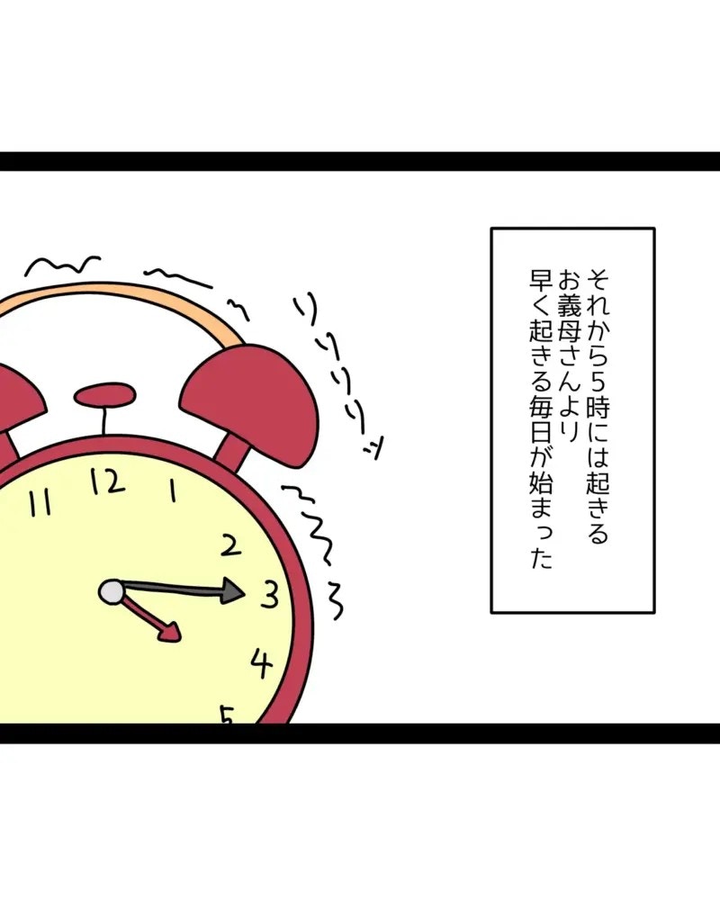 朝起きると、「嫁あるもの誰よりも早く起きるものでしょう?」と嫌味を言う義母。義母より早く起きるとなると、5時前…。毎日こんな生活つらいですよね。