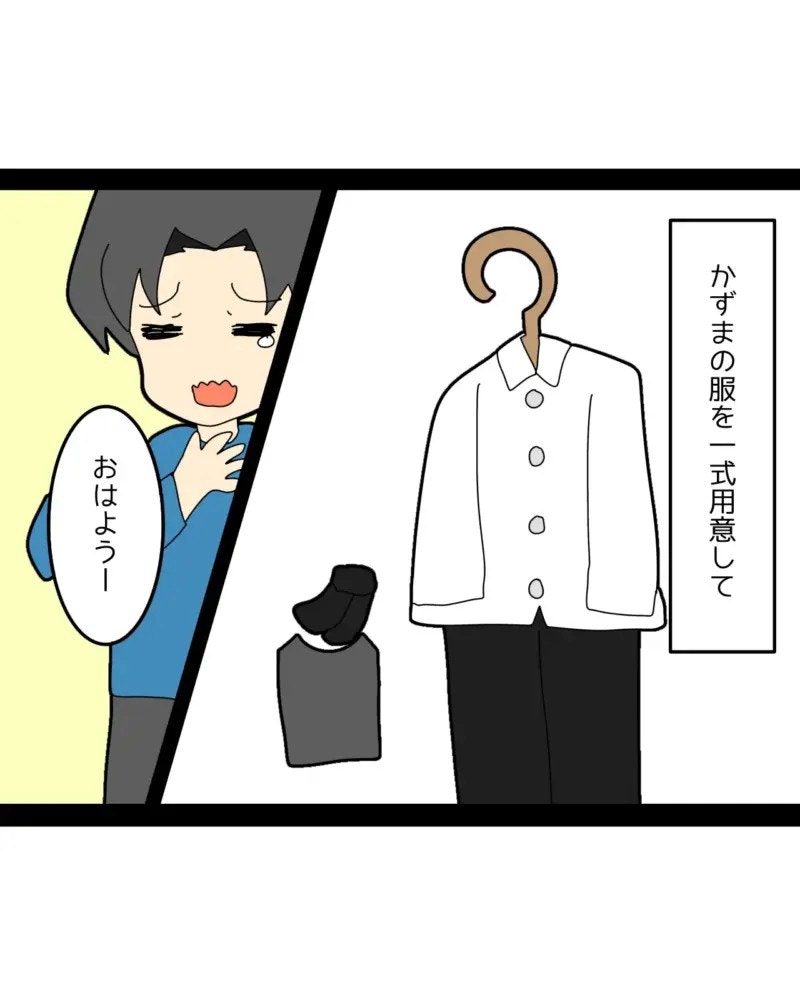 みゆさんの大変な朝が始まりました。義母より先に起き朝ごはんを作り、夫かずまさんの仕事着も準備してあげています。