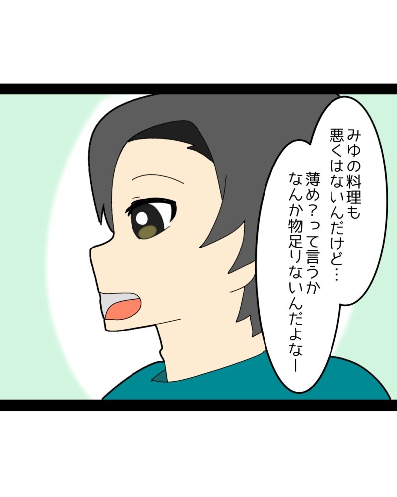義母とみゆさんの料理を比べ、みゆさんの手料理を批判する夫。本来なら、義母からのいじめから妻を守るべき立場のはずなのに、なぜ味方どころか追い打ちをかけるような言動をするのでしょうか。その様子に気を良くした義母は、さらにみゆさんをつつき始めます。この先、同居生活はうまくいくのでしょうか。