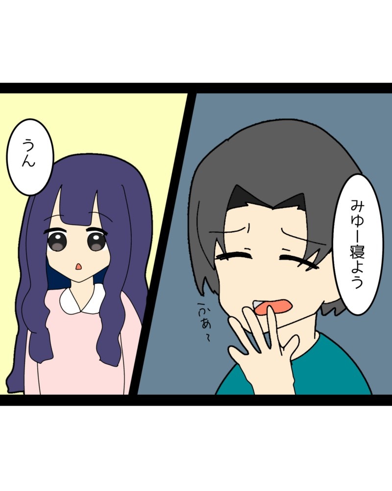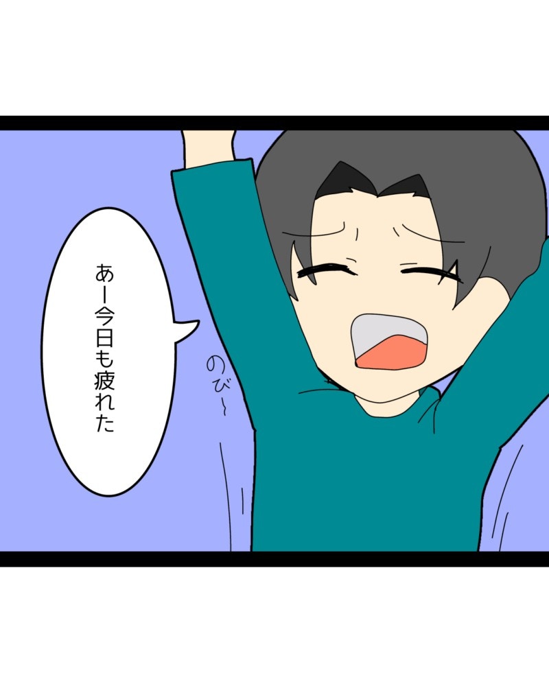 今日も疲れた様子の夫かずまさん。みゆさんが何か言いたげな顔をしています。