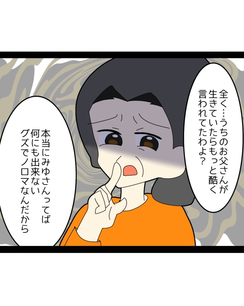 みゆさんへの義母の暴言は止まることを知らず、夫・かずまさんのいないところで執拗に繰り返されていました。人格まで否定するその卑劣さに、みゆさんがどれほど耐えがたい苦しみを抱えていたか…。想像するだけで胸が痛みます。