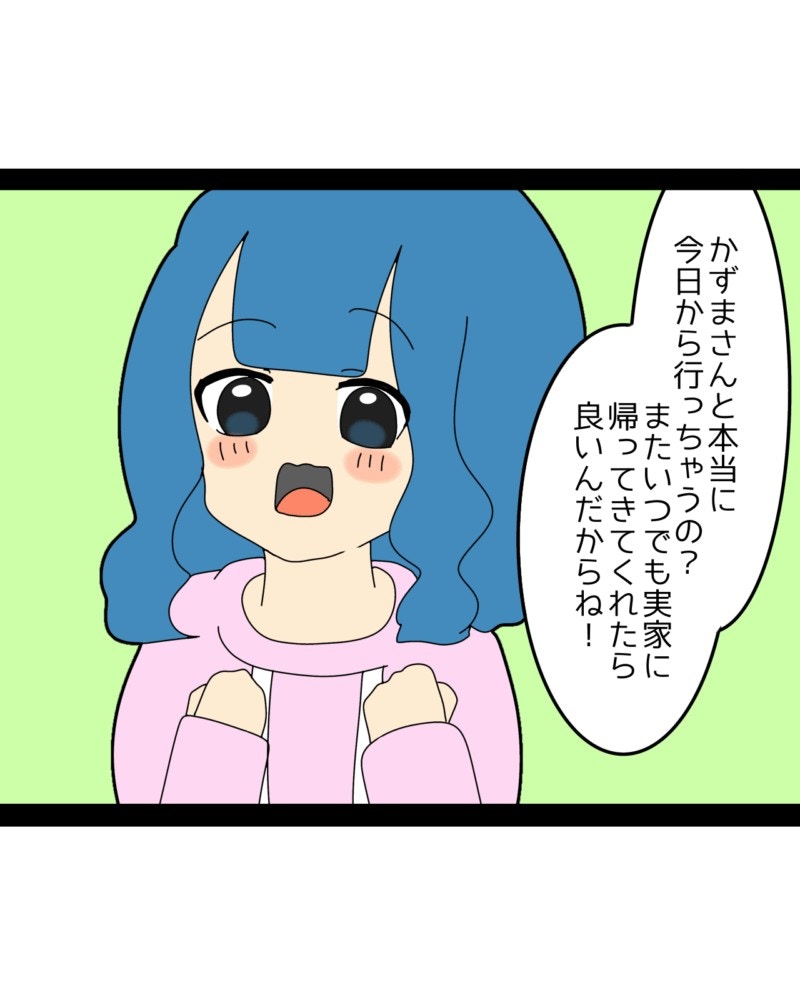 ようやく平穏な生活を取り戻したみゆさん。実家にかずまさんが迎えに来たその時、妹のりなさんが、まるで釘をさすようにかずまさんへ忠告をします。穏やかな空気の中に、わずかな緊張が走る瞬間でした。