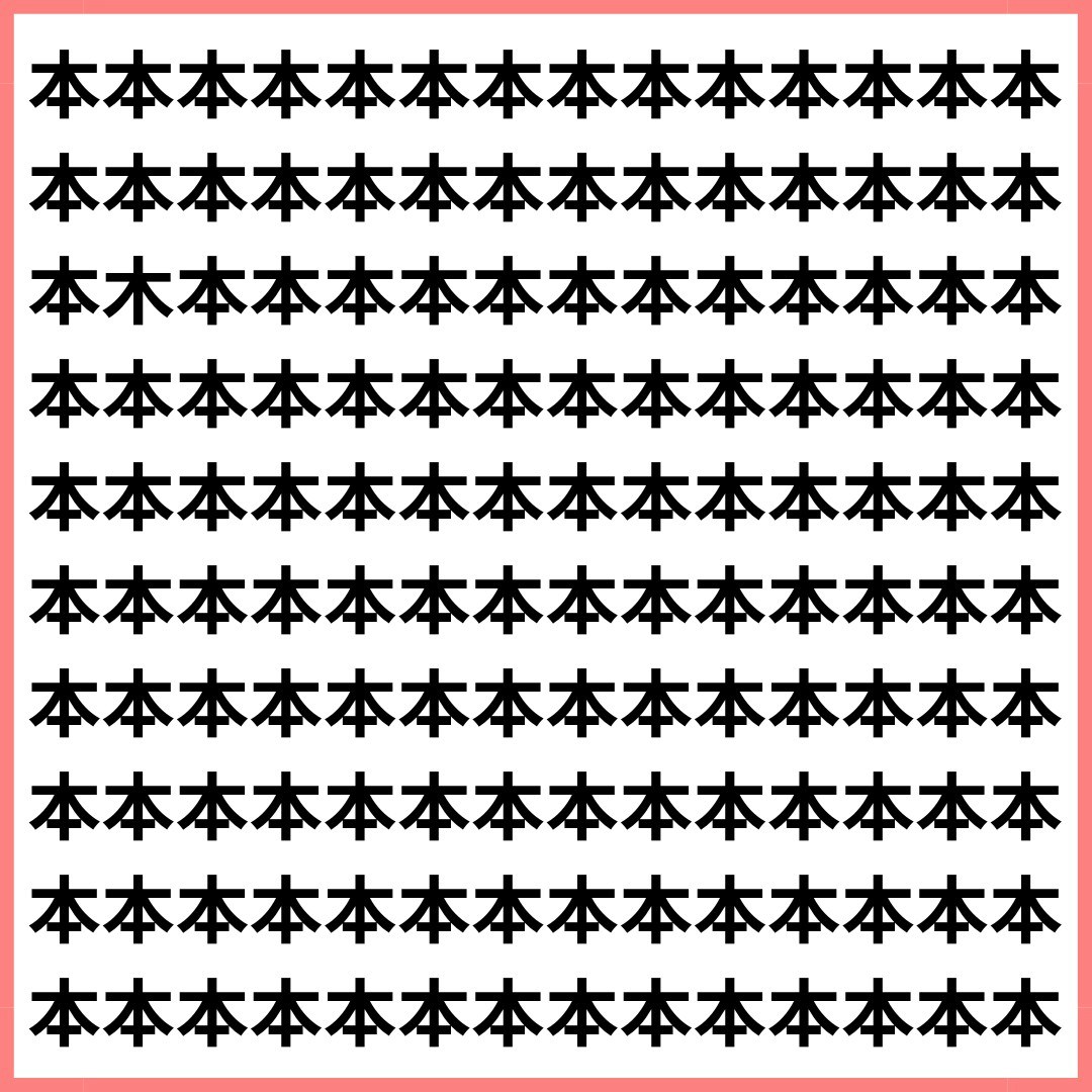 たくさんの「本」の中に、1文字だけ違う漢字が混ざっています。