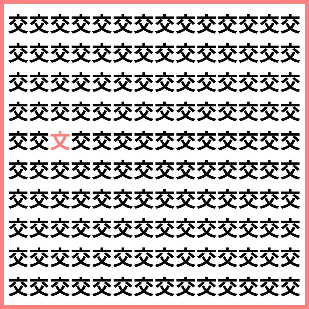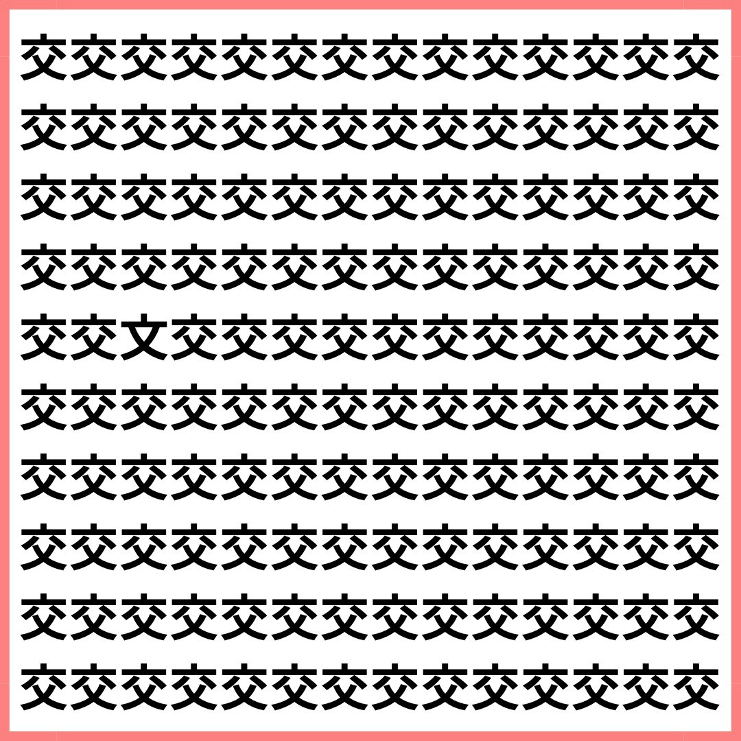 たくさんの「交」の中に、1文字だけ違う漢字が混ざっています。