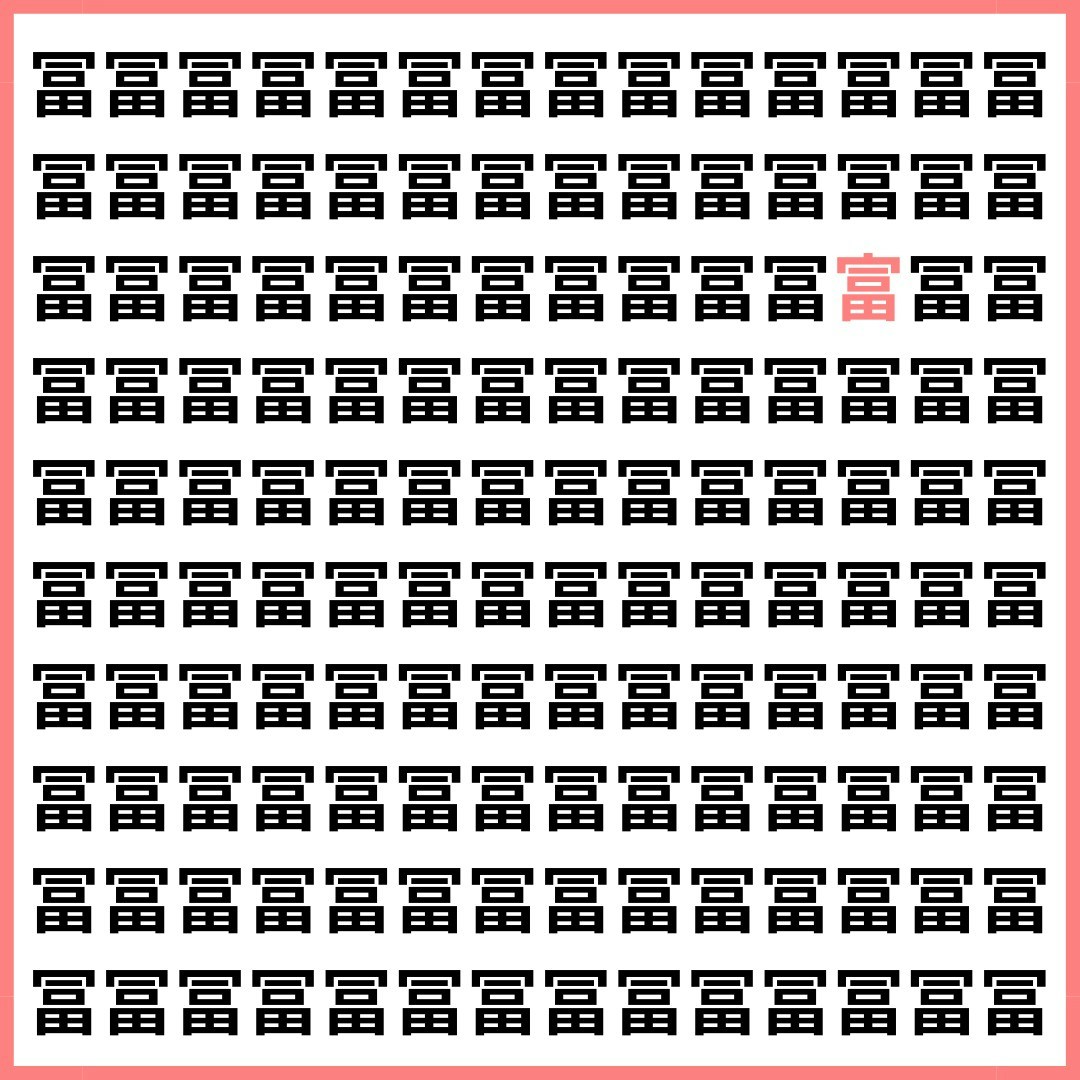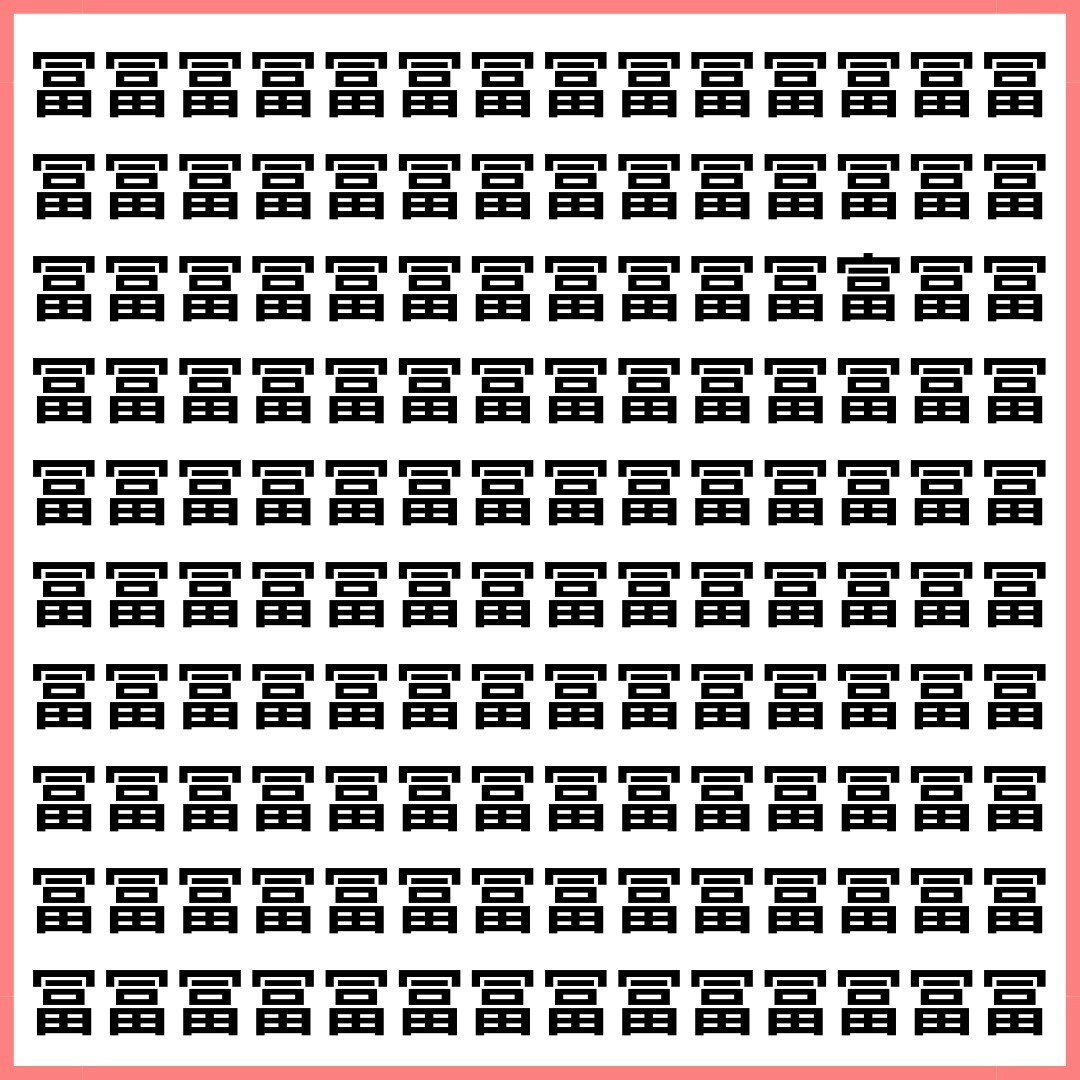 たくさんの「冨」の中に、1文字だけ違う漢字が混ざっています。