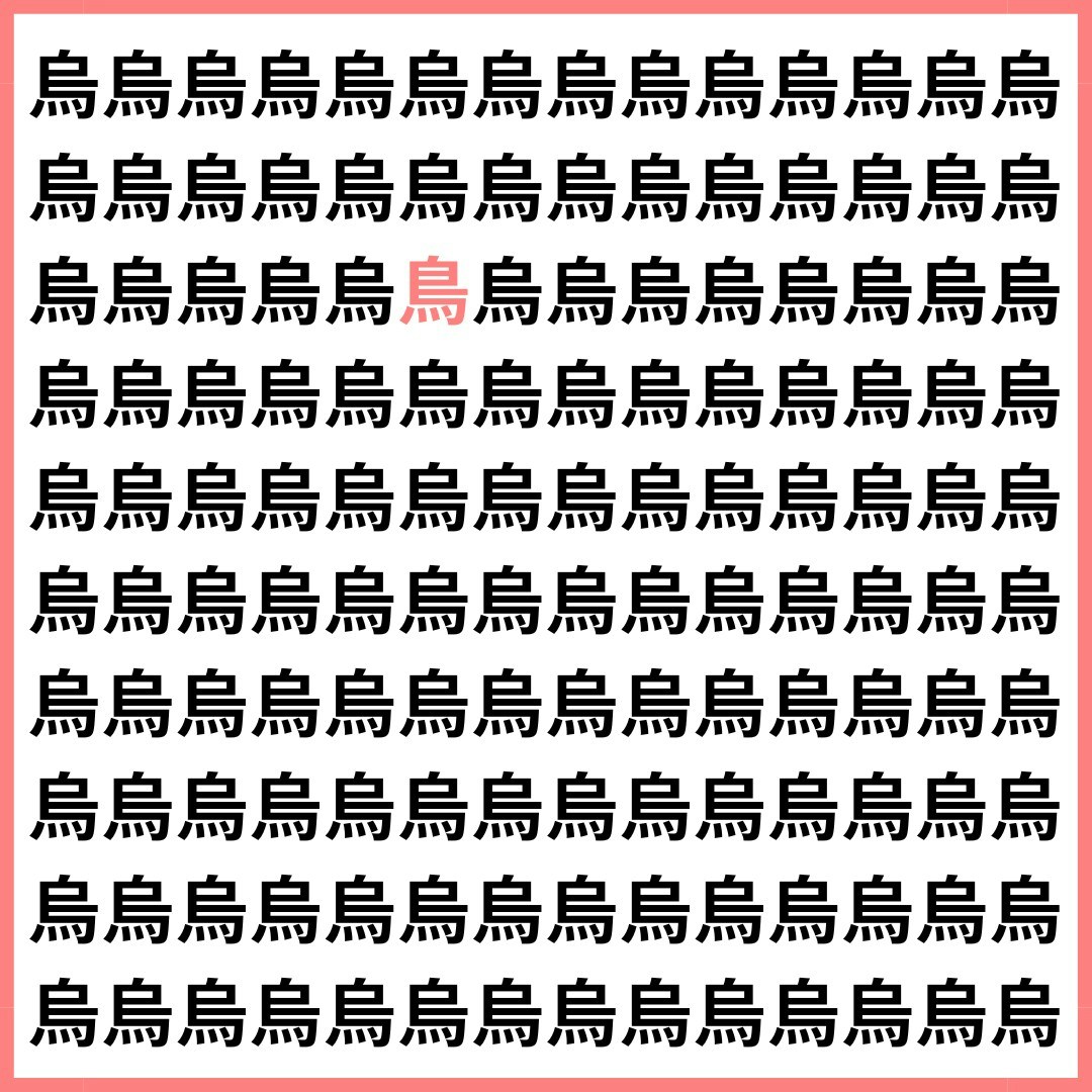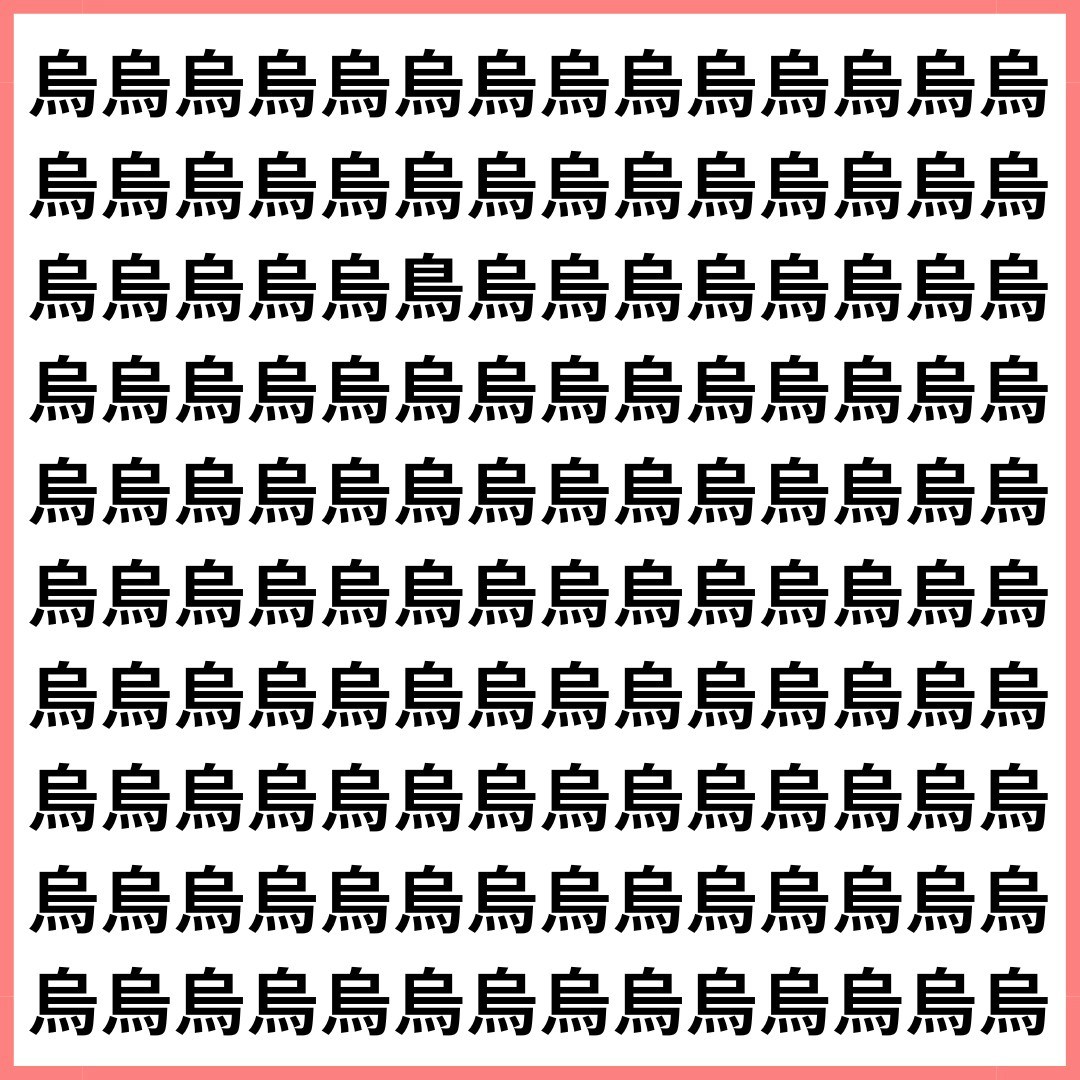 たくさんの「烏」の中に、1文字だけ違う漢字が混ざっています。