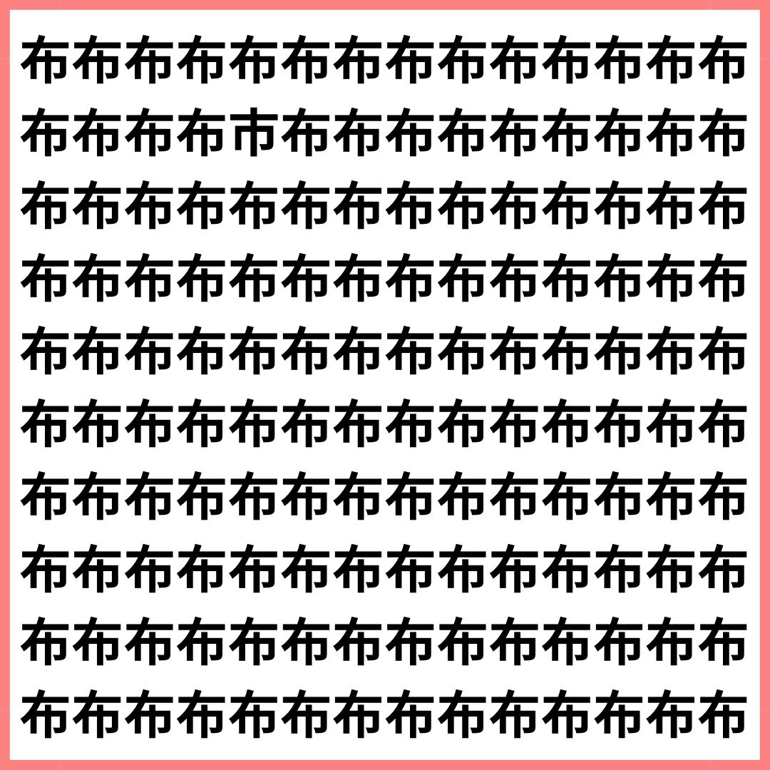 たくさんの「布」の中に、1文字だけ違う漢字が混ざっています。