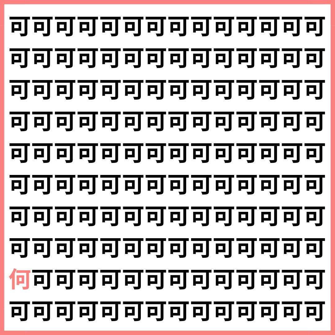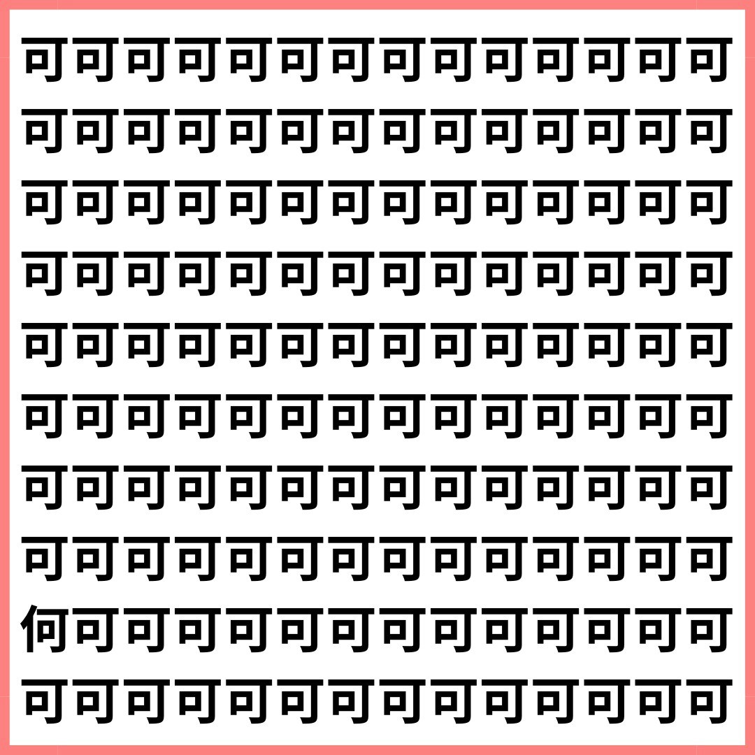 たくさんの「可」の中に、1文字だけ違う漢字が混ざっています。