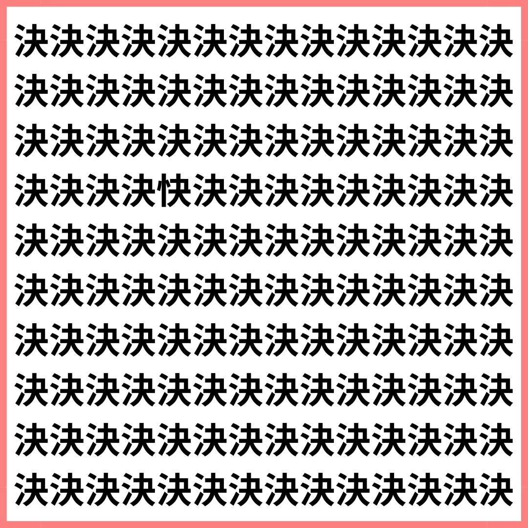 たくさんの「決」の中に、1文字だけ違う漢字が混ざっています。