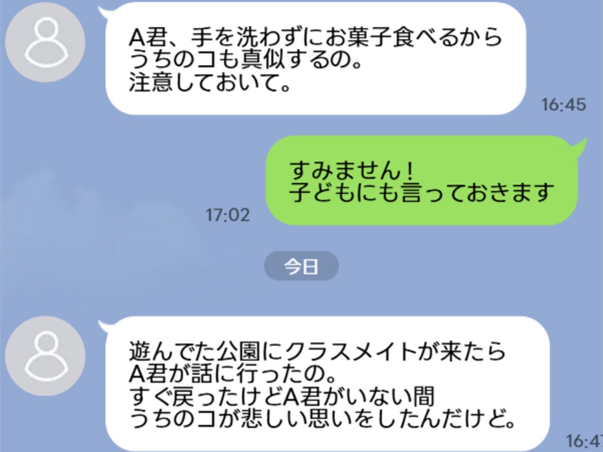 「遊んでた公園にクラスメイトが来たらAが話に行って、すぐ戻ったけどAがいない間うちのコが悲しい思いをした」