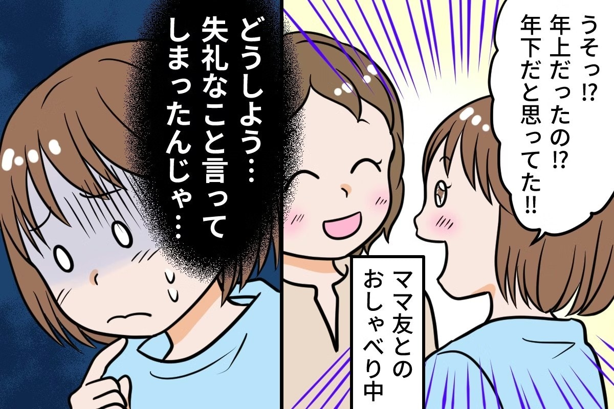 ママ友と年齢の話になり、今まで自分より年が下だと思っていたママ友が1つ年上であることが分かった投稿者さん。