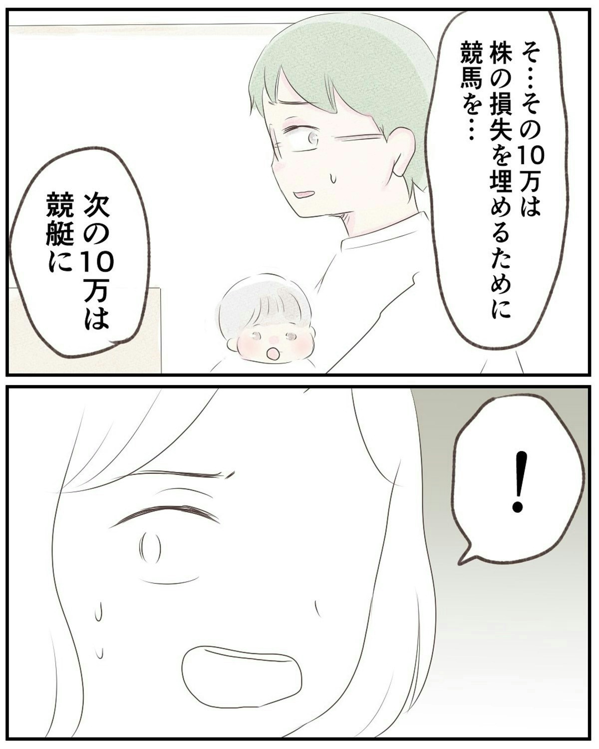 夫は、ギャンブルで借金を返済しようとしてました…。ボーナスの40万円も、まるまる競馬につぎ込まれたあと。しかも「全部負けちゃった」とへらへらしながら答える姿には、あきれてしまいます。