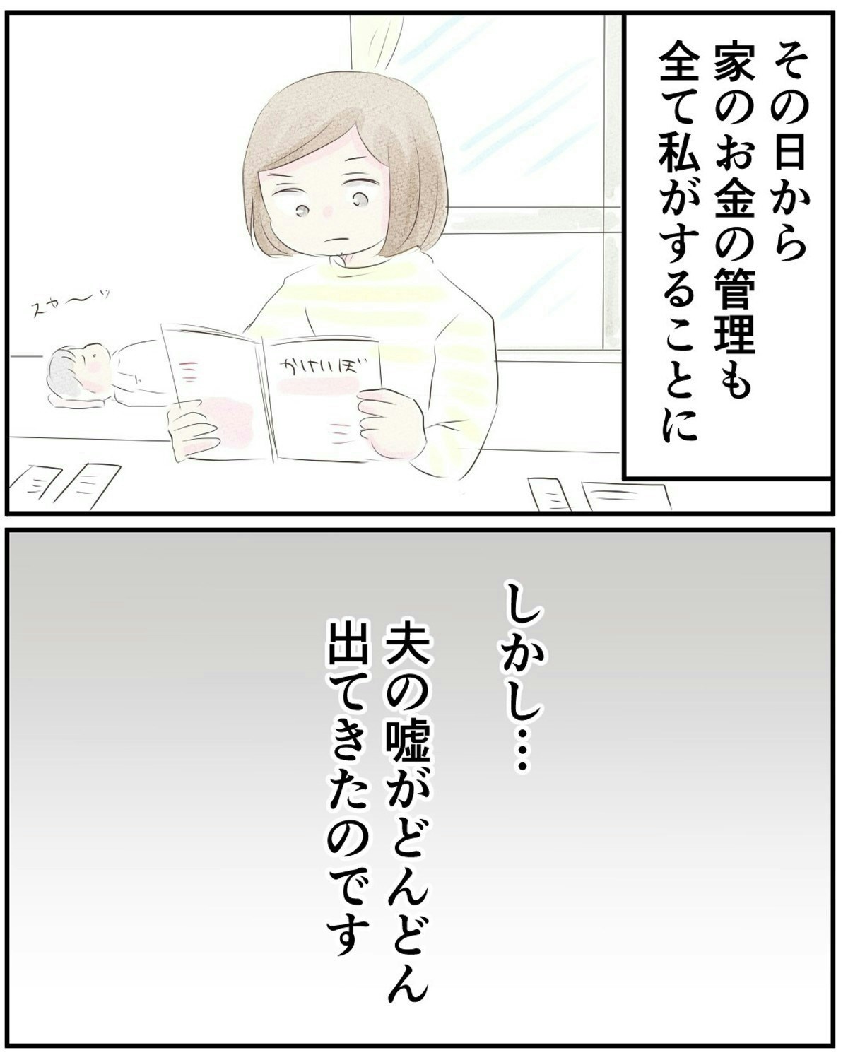 夫の借金が発覚したのを機に、家計管理をすることにした みつこさん。もう、夫のことは信用できませんね。ですが、家計を見直してみると、次から次へとお金の不自然な動きがあることに気づきます…。