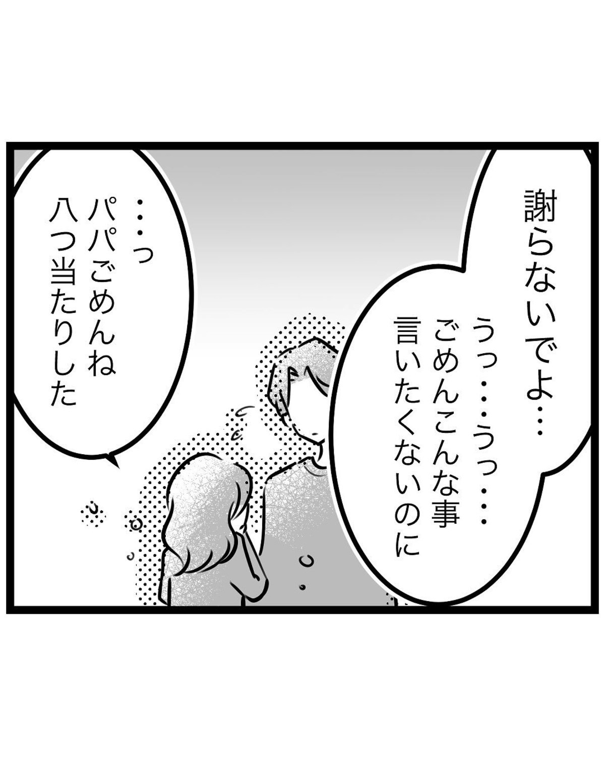 後悔や苛立ちから八つ当たりしてしまうも、優しく受け止める夫の姿にハッとし、自分を取り戻しました。