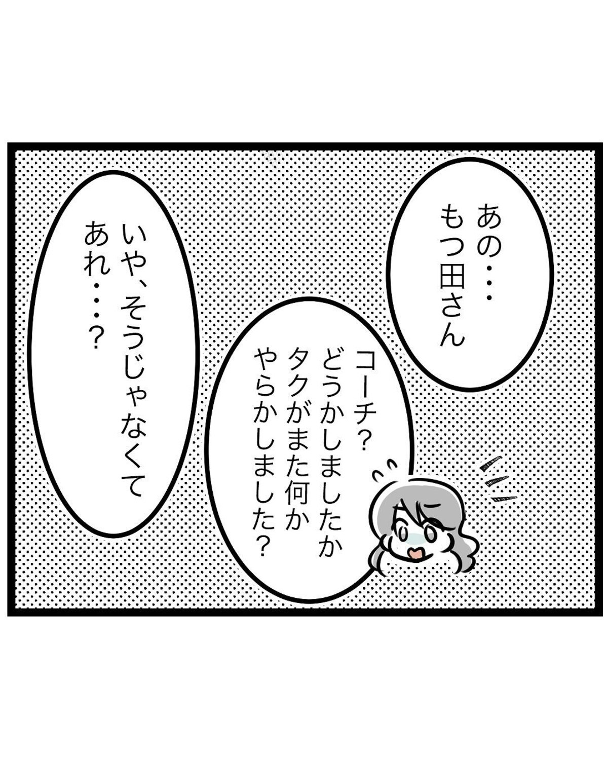 やってきたのはコーチでした。突然のことに驚いたもっつんさんは、息子が何か問題を起こしたのかとドキッとしました。