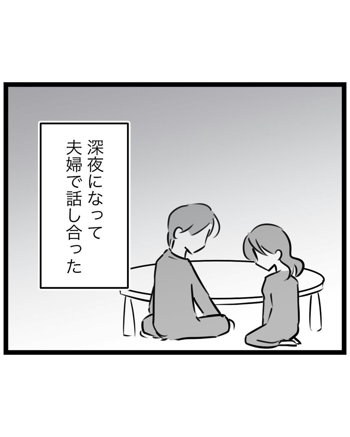 深夜に泣きながら、夫婦そろって真剣に話し合います。