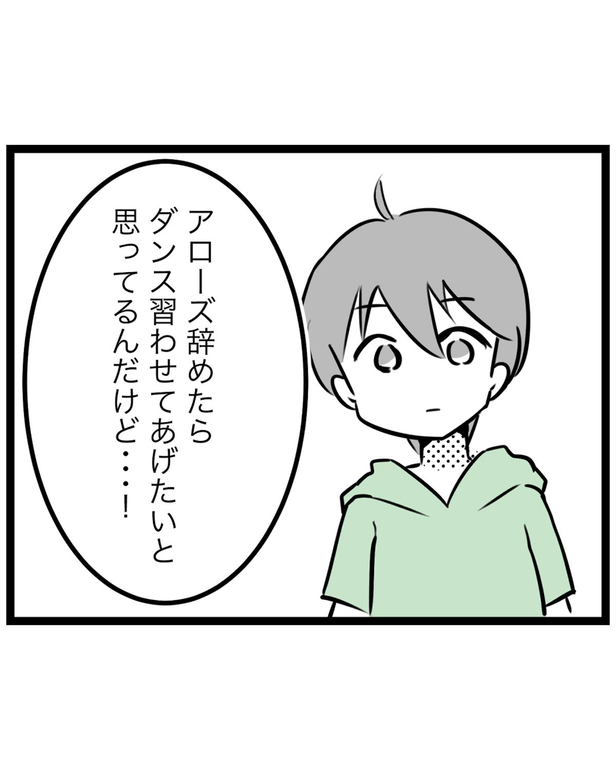 息子が夜間練習から外されたことをきっかけに、ついに退部の決意を固めたもっつんさん。「辞めたくない」と必死に抵抗する息子に、代わりの選択肢としてダンスを提案するのでした。