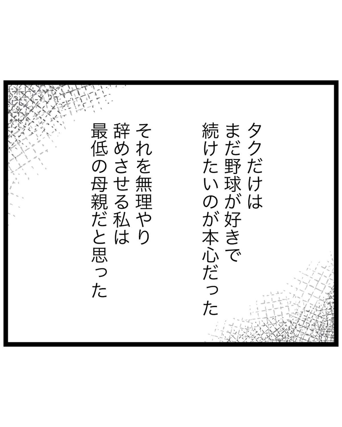 息子が本心ではまだ野球を続けたいと分かっていながら、それでも辞めさせる選択が正しいのだと、もっつんさんは自分に言い聞かせました。