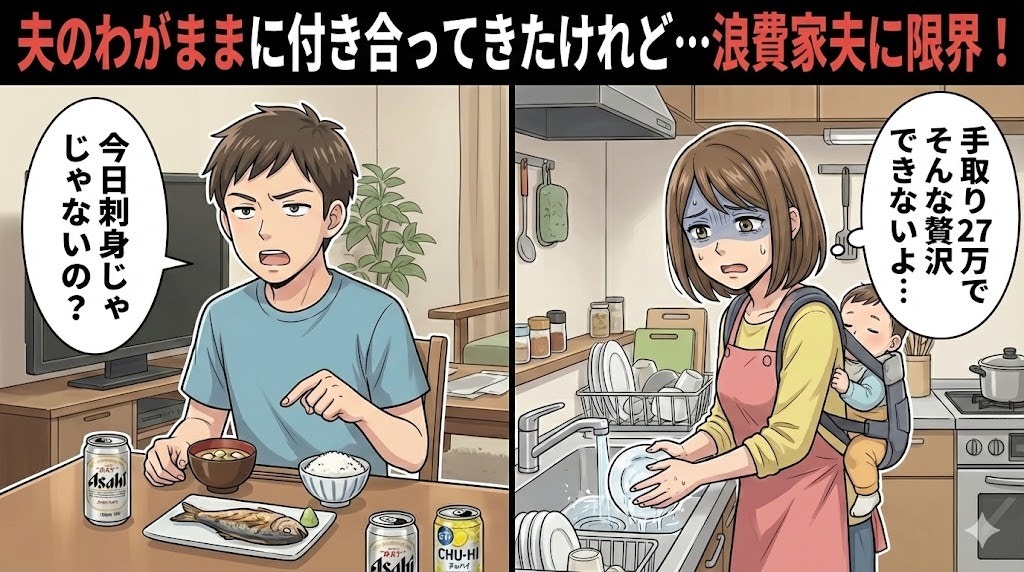 義実家がお金持ちだから、刺身だって毎日出て服だって何枚でも買ってもらっていただろうけど、手取り27万でそんな生活ぜったい無理なことに旦那も気付け!