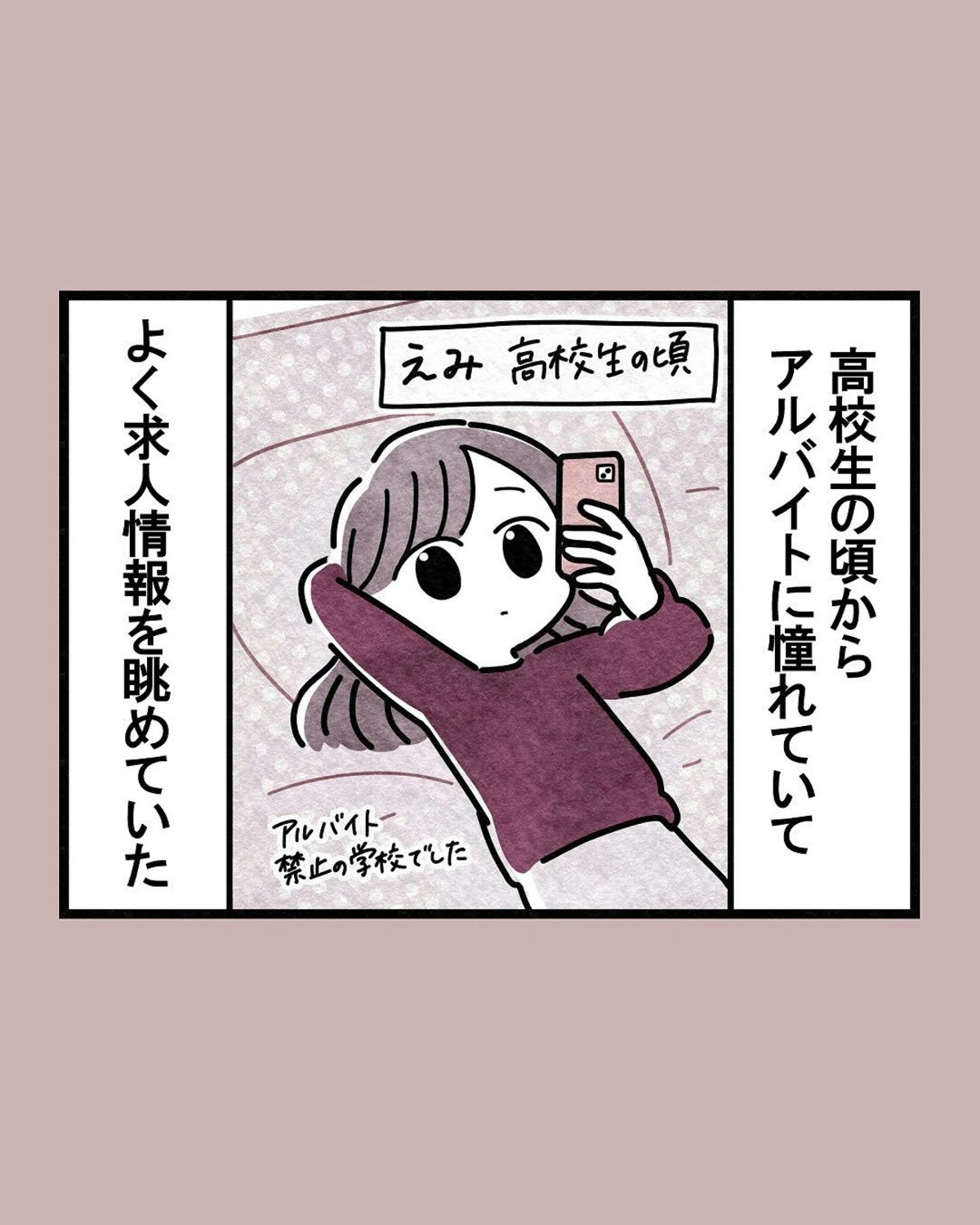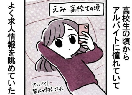 高校生の時からアルバイト情報をチェックしてたえみさん。アルバイトは禁止でもアルバイトの求人を見るのは自由ですもんね。