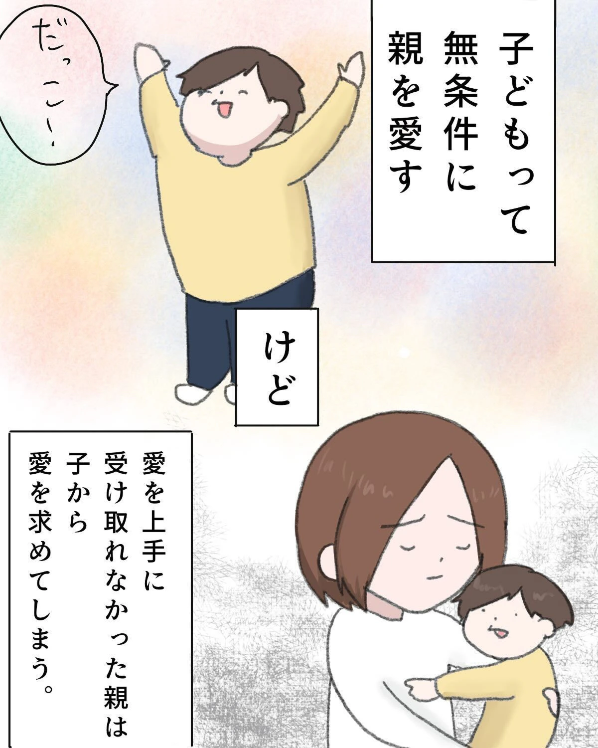 子どもからの愛を確かめるのではなく、安心して気持ちを表現できる環境をつくること。そして、自分から愛を伝えること。その気づきは、揺れやすい心を抱える人の背中を、そっと支えてくれるような優しさに満ちています。