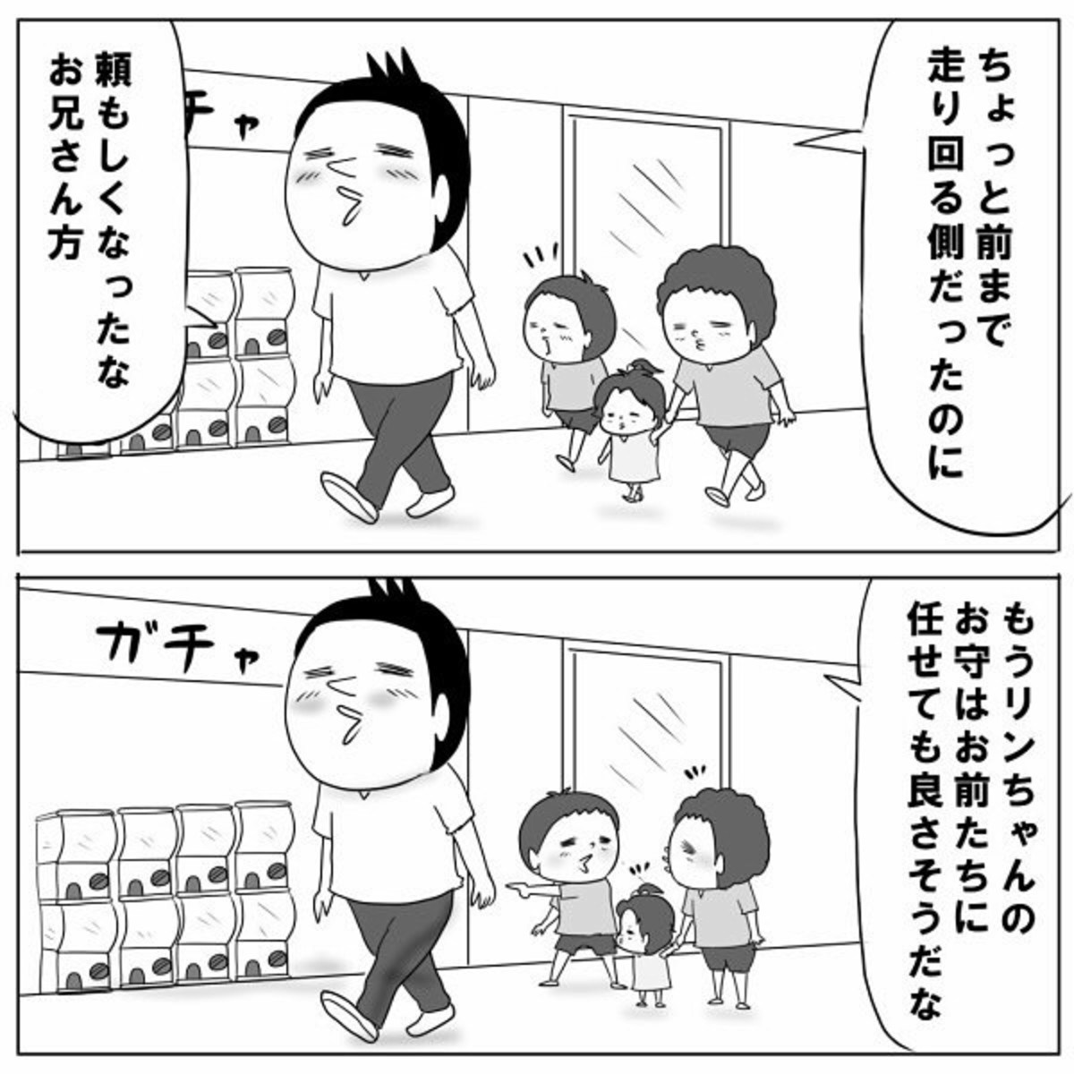 フォローしていたと思ったら、次の瞬間には姪っ子と一緒にどこかへ…。息子たちの頼もしさと自由さが同居する行動に、思わずクスッとしてしまいますね。
