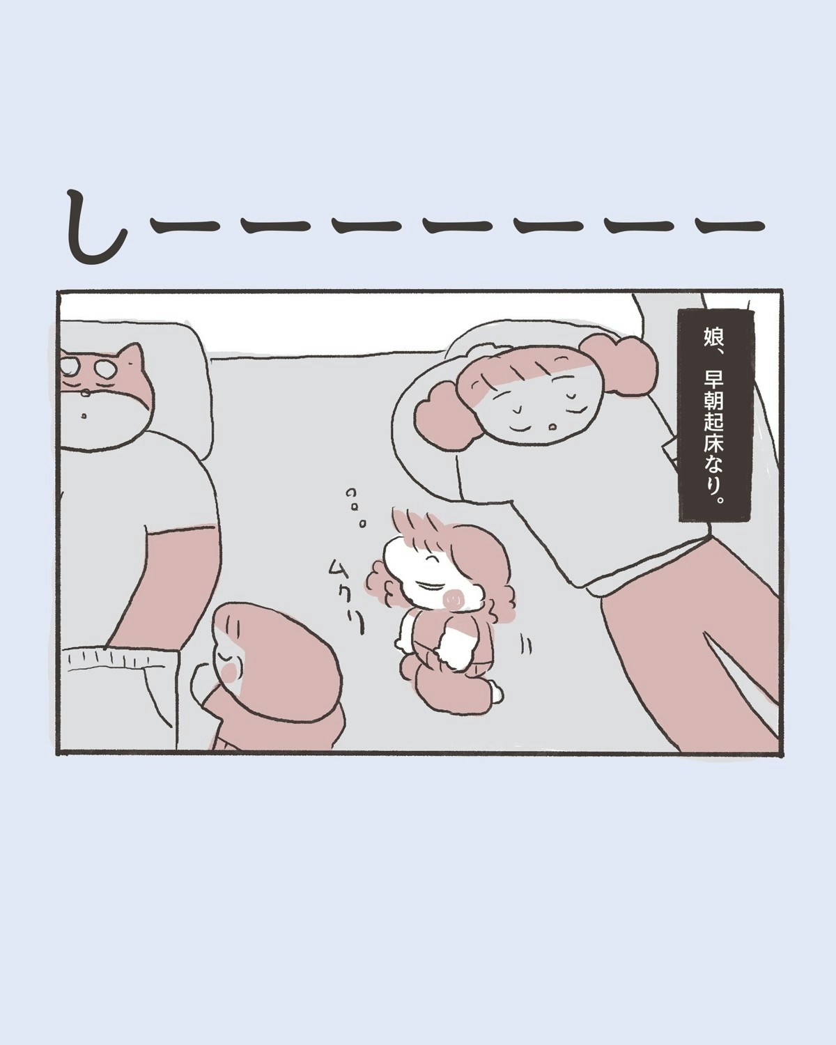 ママの言うことを聞いて「しー!」とした娘、お兄ちゃんに向かって大きな声を出してしまいました…。なにはともあれ、朝から元気で何よりですね。