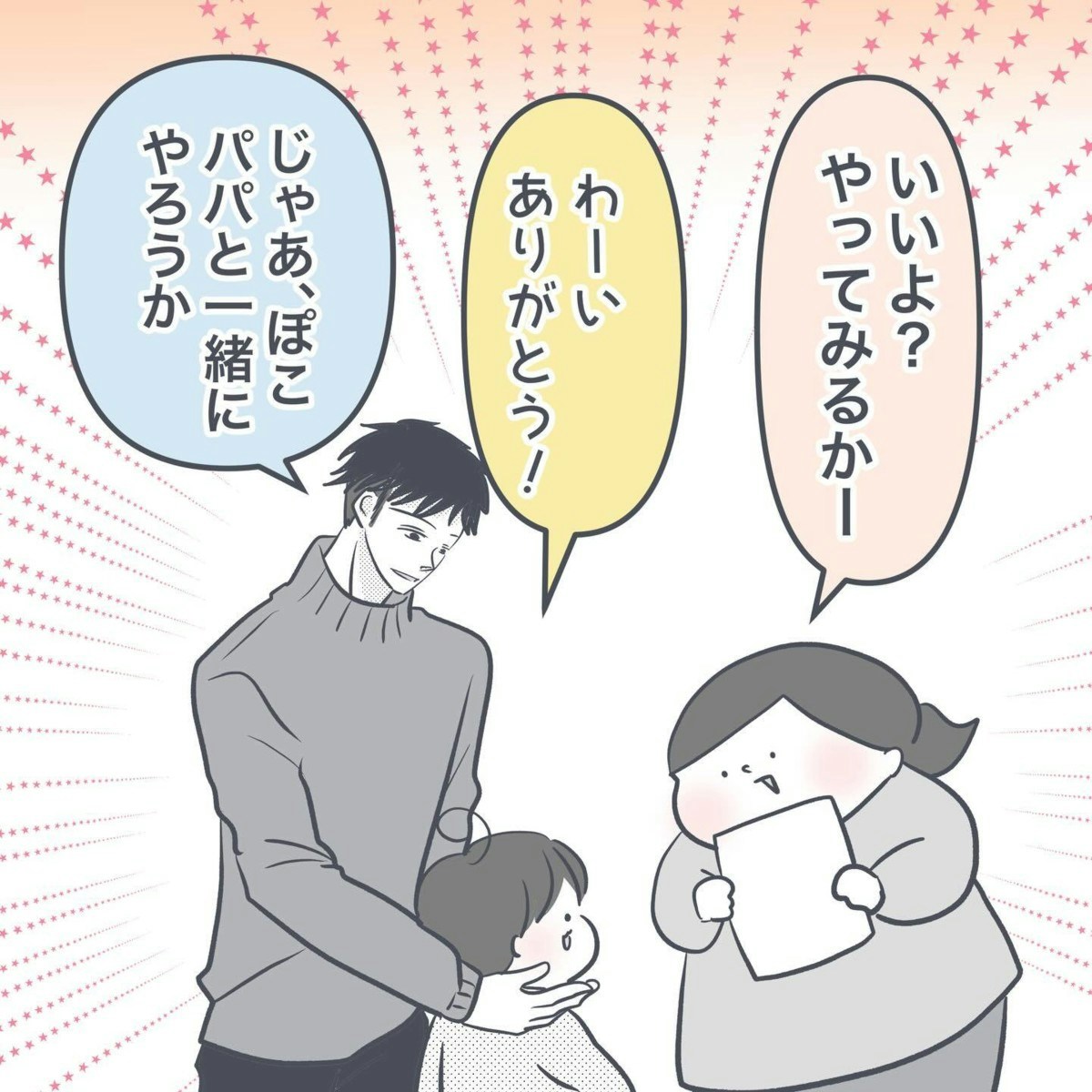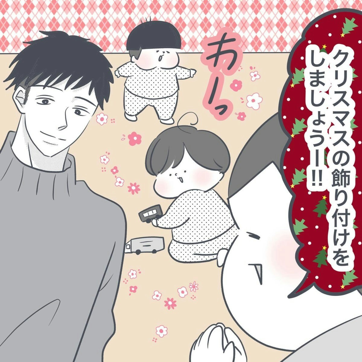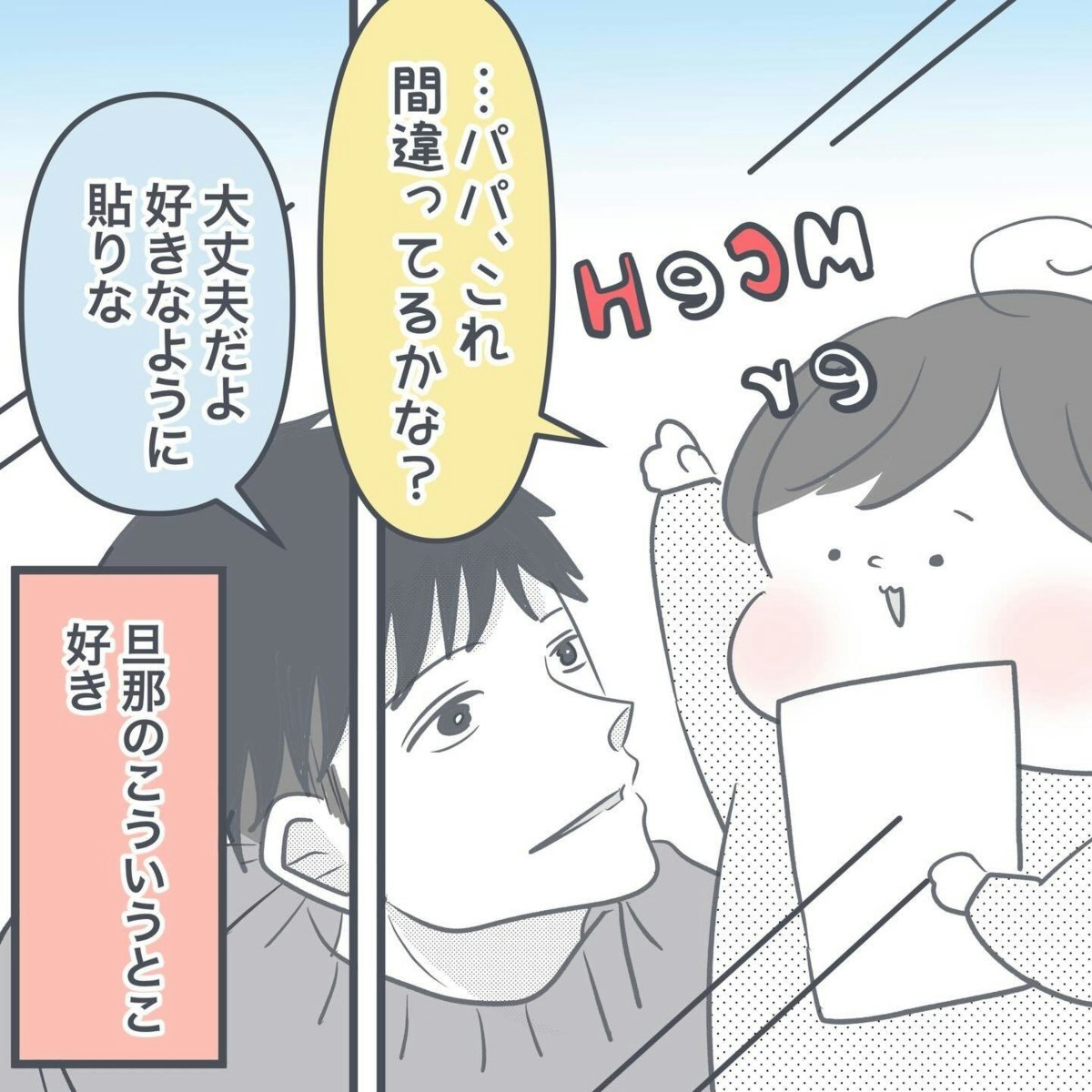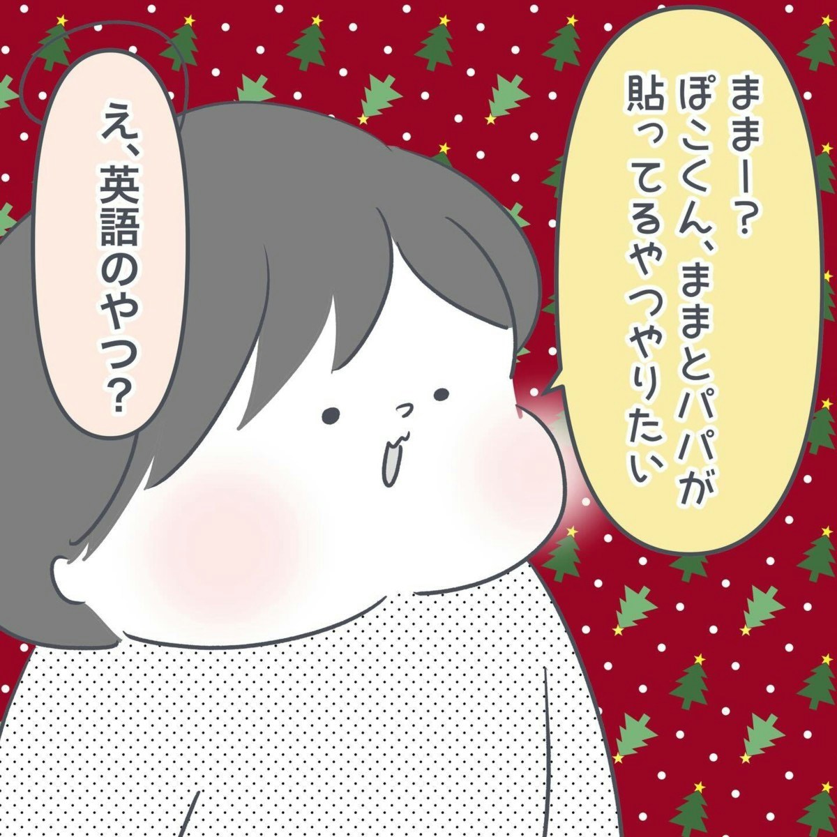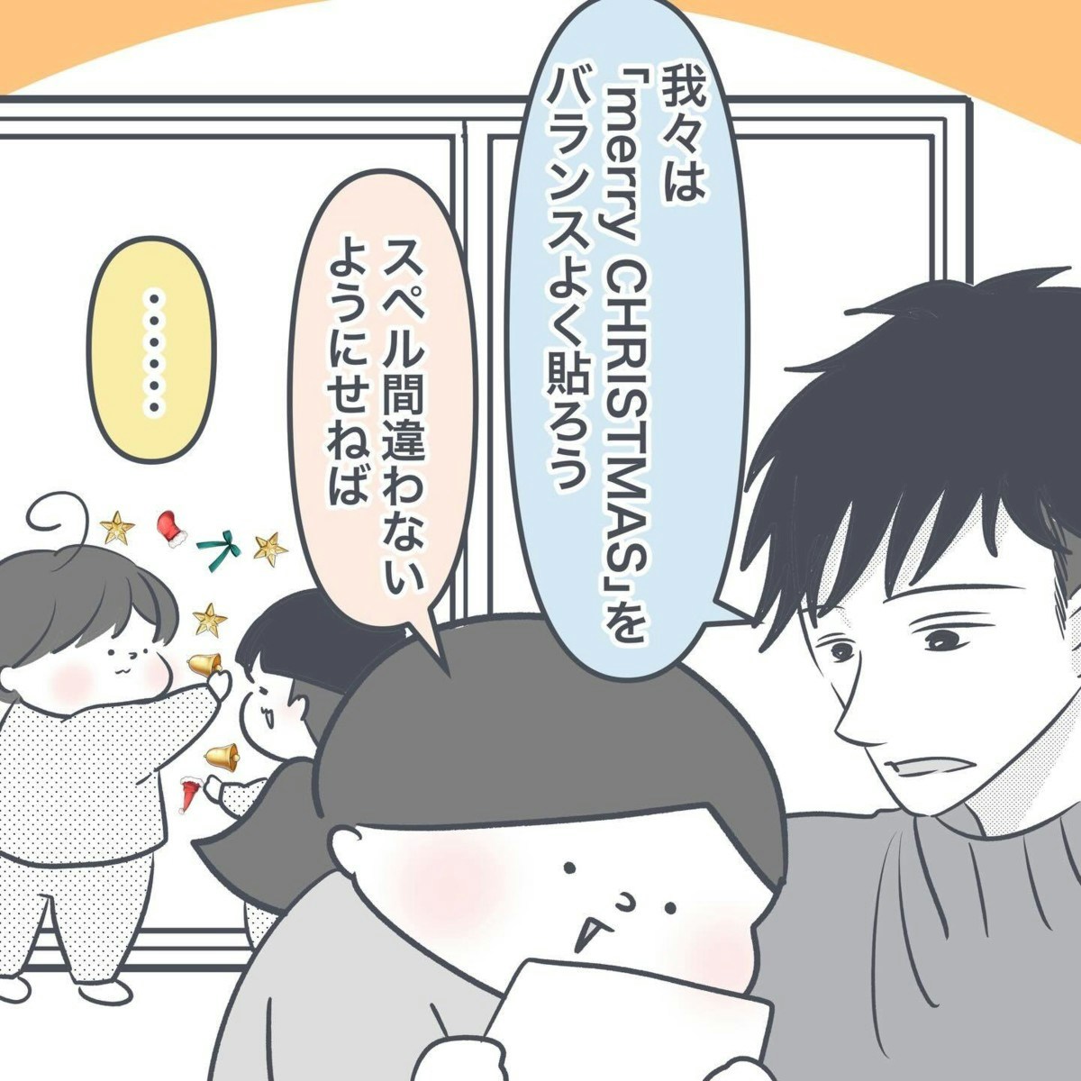 スペルの正しさよりも、楽しむ気持ちを優先したパパの言葉にホッコリ。家族で飾り付けをする時間そのものが、かけがえのない思い出ですね。