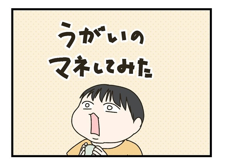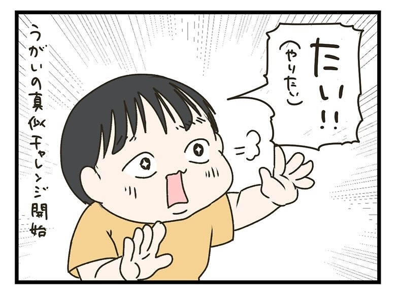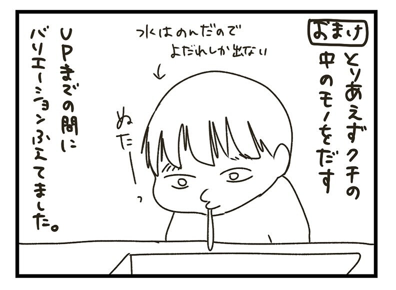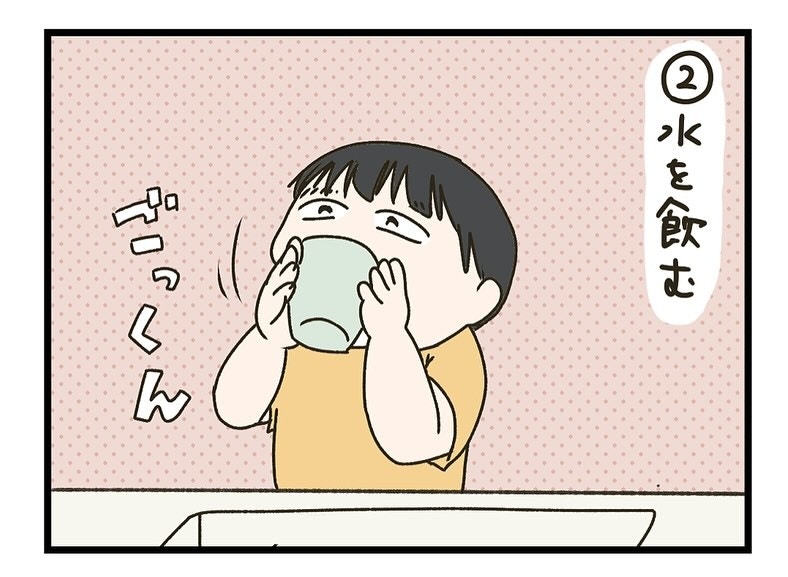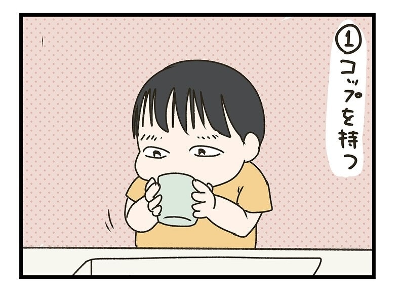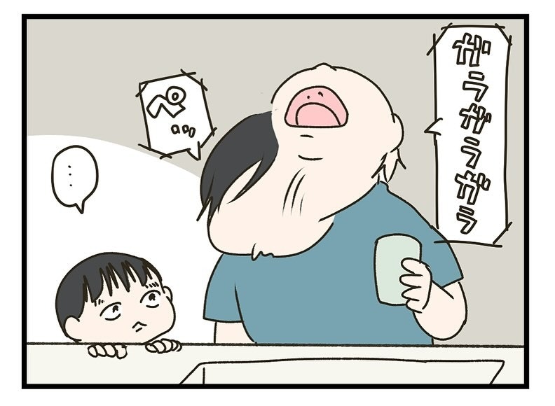 コップを持って、いざうがいに挑戦です。水を飲んで「あー」と言った後、残りの水を流してブーでフィニッシュ。思うようにはできていなくても、一生懸命な姿がかわいすぎますね。