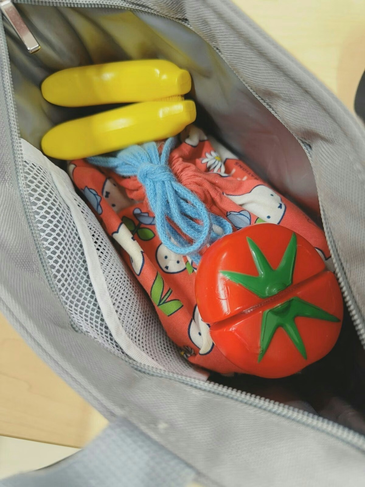 職場でお弁当用を冷蔵庫に入れようと思ってバッグあけたらバナナとトマト入ってた😂息子が入れてくれたみたい😂 ※1