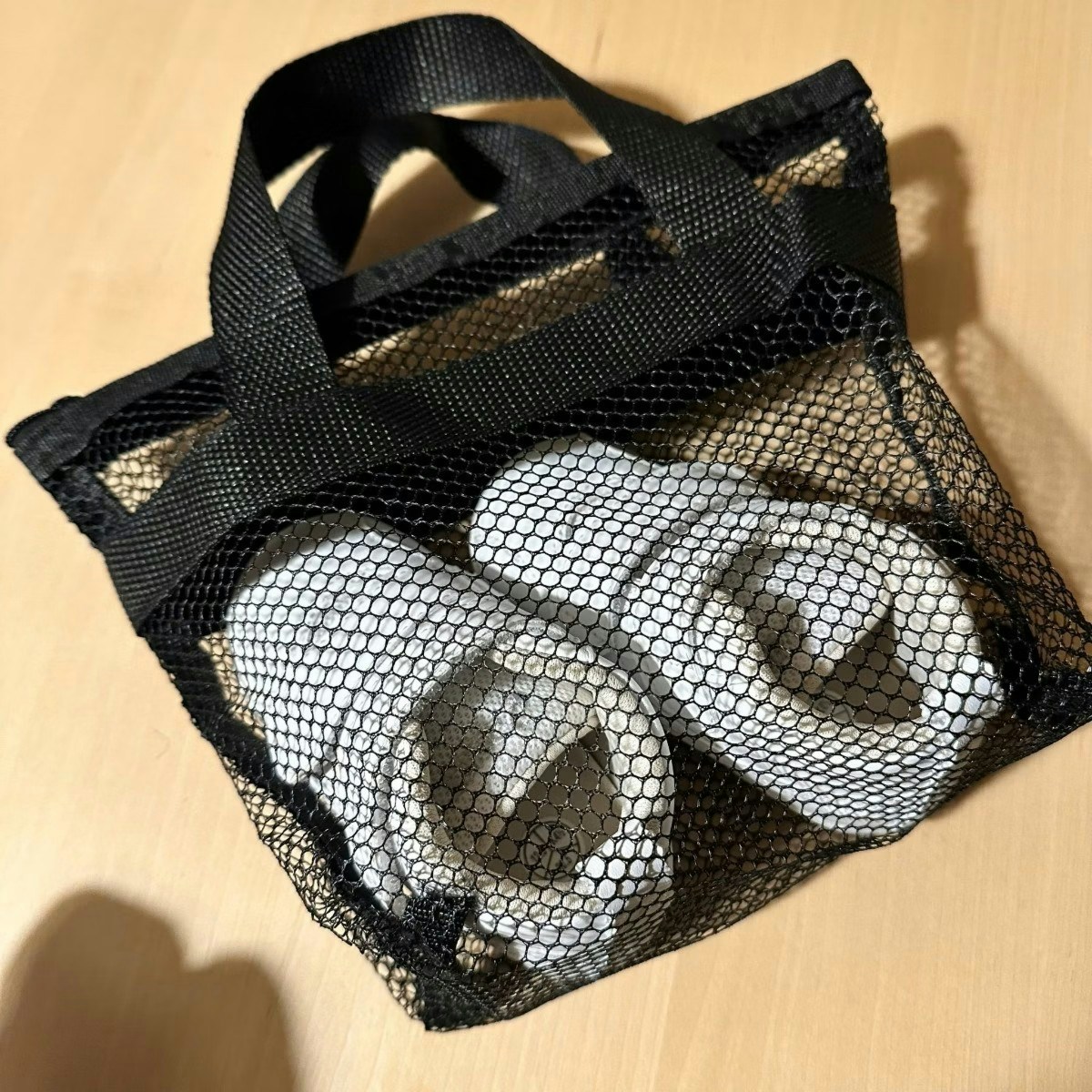 シューズクリップは微妙だと感じていたところに、メッシュのポーチを見つけたというこもさん。メッシュなので通気性は抜群ですし、子どもが勝手に靴を脱いでなくしてしまう心配もいらないですよね。何よりもこれは100円ショップのセリアで見つけた商品とのこと。『スパバッグ メッシュタイプ』という商品のようです。100円であれば汚れても寛大でいられますし、お試しで買ってみたくなりますよね。