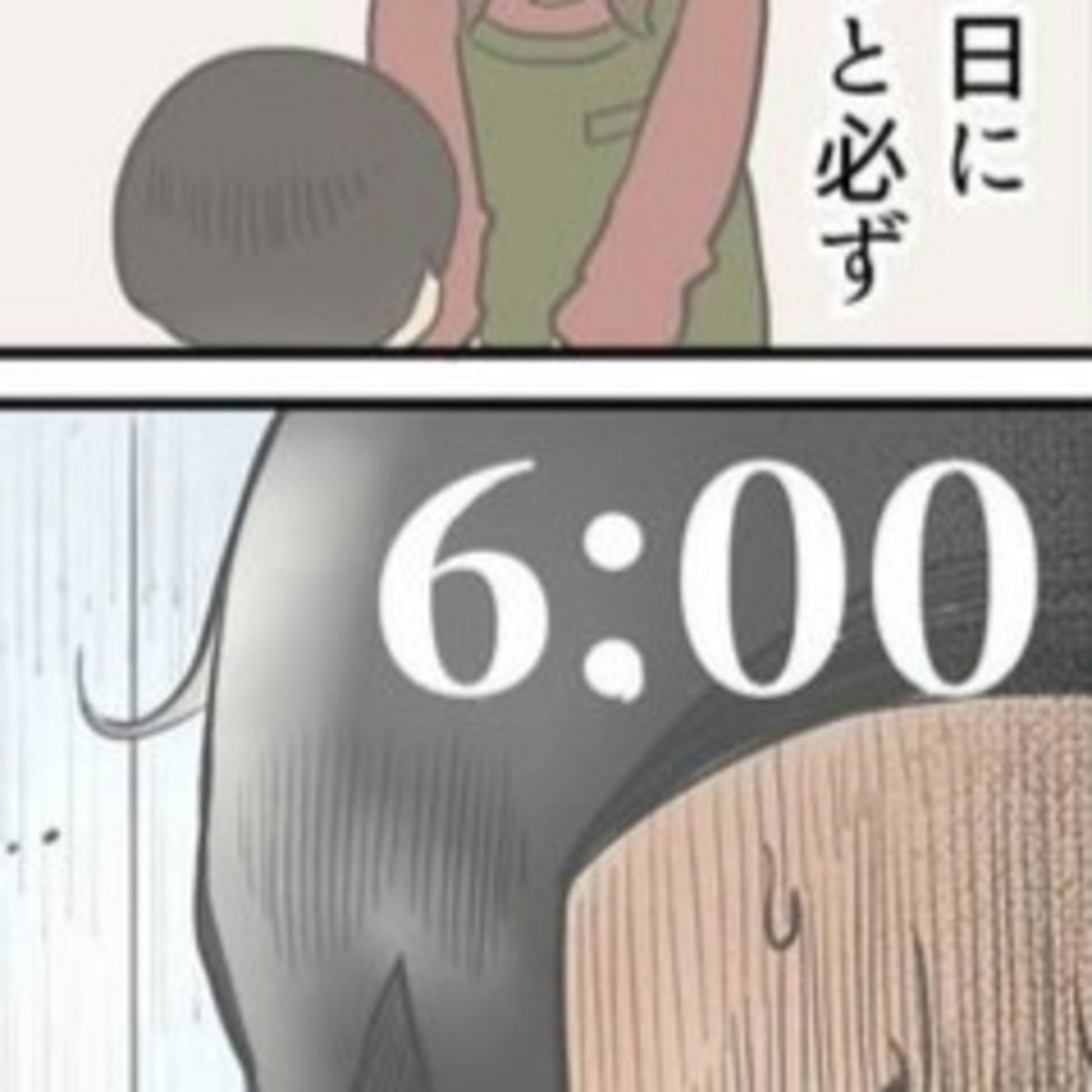休みの日の朝6時に「今日ってお休み?」と目を輝かせてニコニコしながらたずねてくる娘さん。その無邪気さとかわいさと同時に、「まだ寝ててくれ~~!」という親の心の叫びが絶妙なギャップで描かれています。