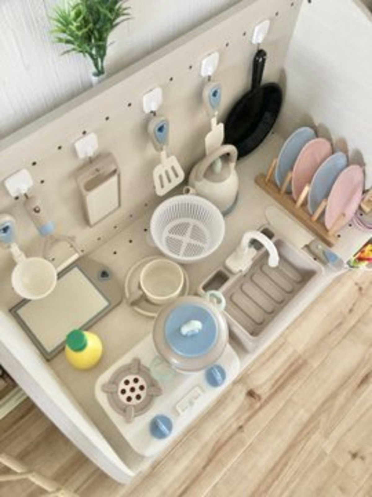 ママ友が「これ真似しよう〜!」って言ってくれた手作りままごとキッチン🍳