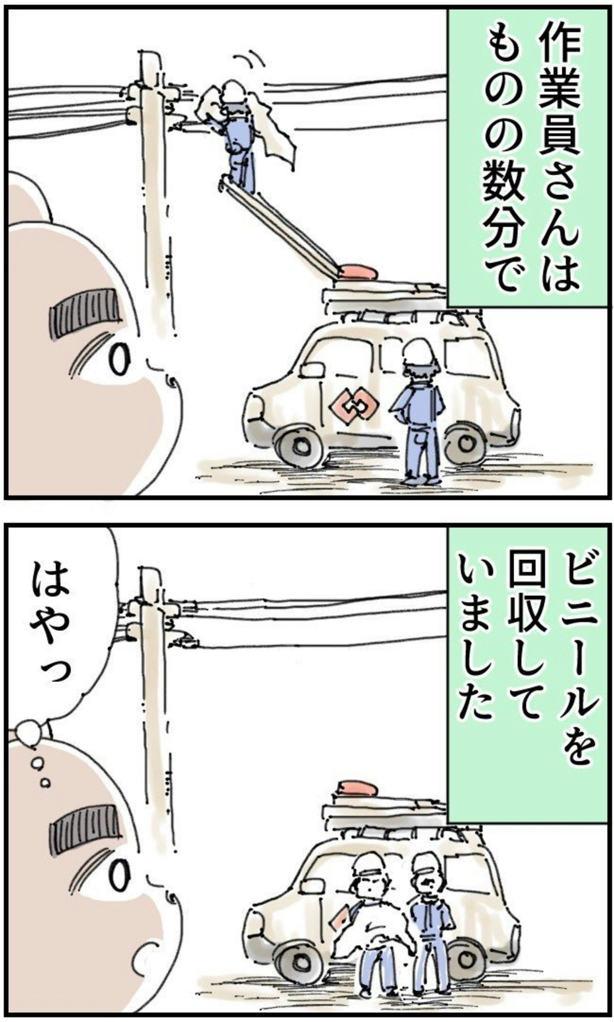 この投稿には「ちゃんと対応してくれた東電の人に感謝ですね エッセイもっと見たいです」「引っかかりますよね電線って。」といったリプライがついていました。