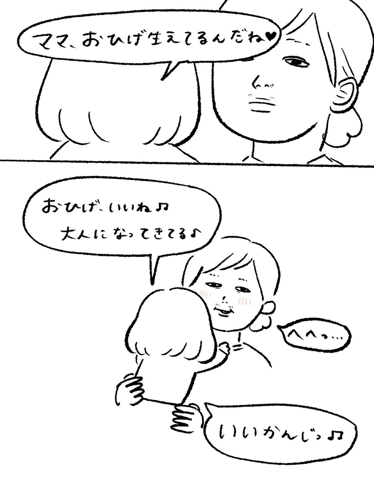 コンプレックスに感じて恥ずかしくなってしまいそうなポイントも、娘さんにかかればすべてポジティブ変換してくれます。「大人になってきてる」そして最後には「いいかんじ♪」。全部まとめて「いいかんじ」にしてくれる娘さんの全肯定力にママが救われた瞬間でしたね。