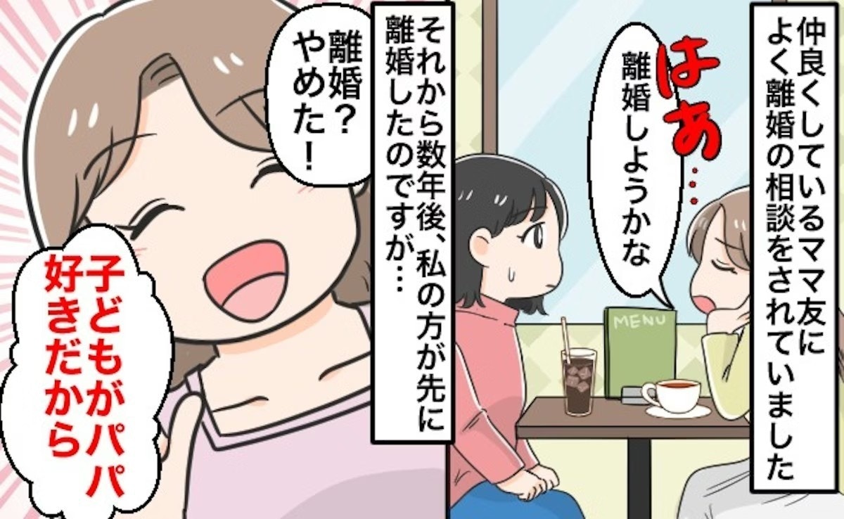 ママ友は自分が選ばなかった「離婚」の道を選択した投稿者さんに言葉を掛けることで、自分が選んだ道が間違っていなかったと言い聞かせているのではとの声が届きました。もしかすると、この声にあるようにママ友は自分を保つことに必死になっているのかも。