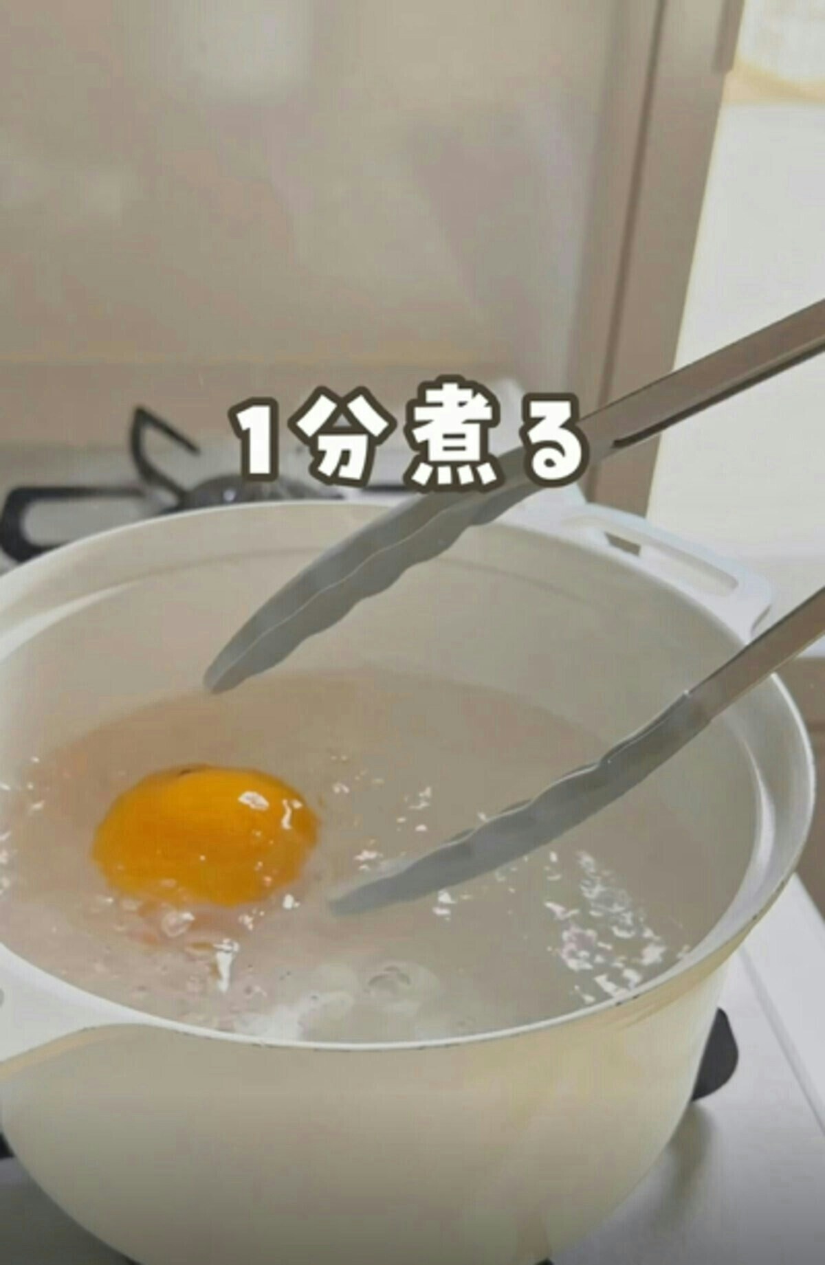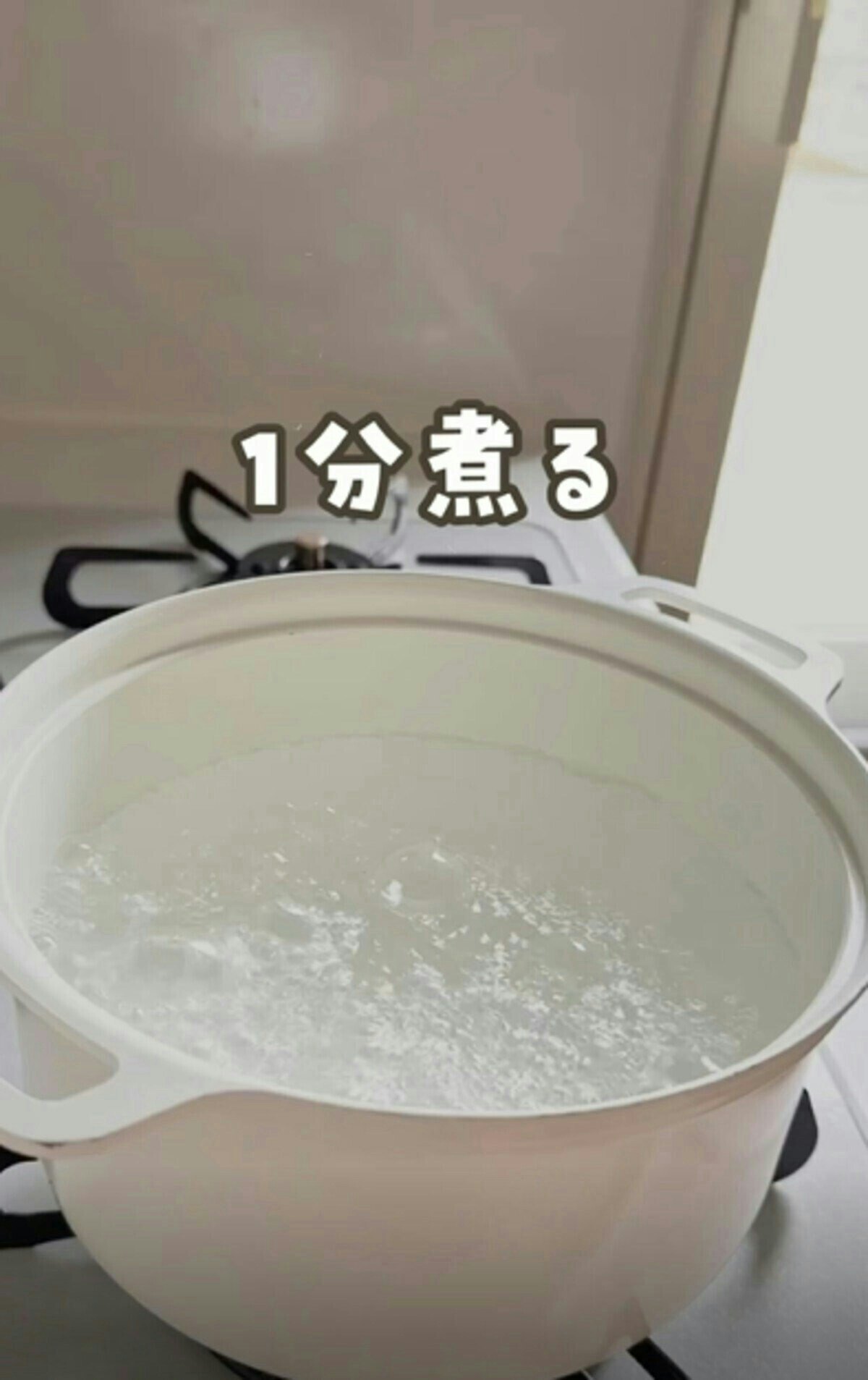 沸騰した湯に、みかんを入れます。そして、1分間加熱します。