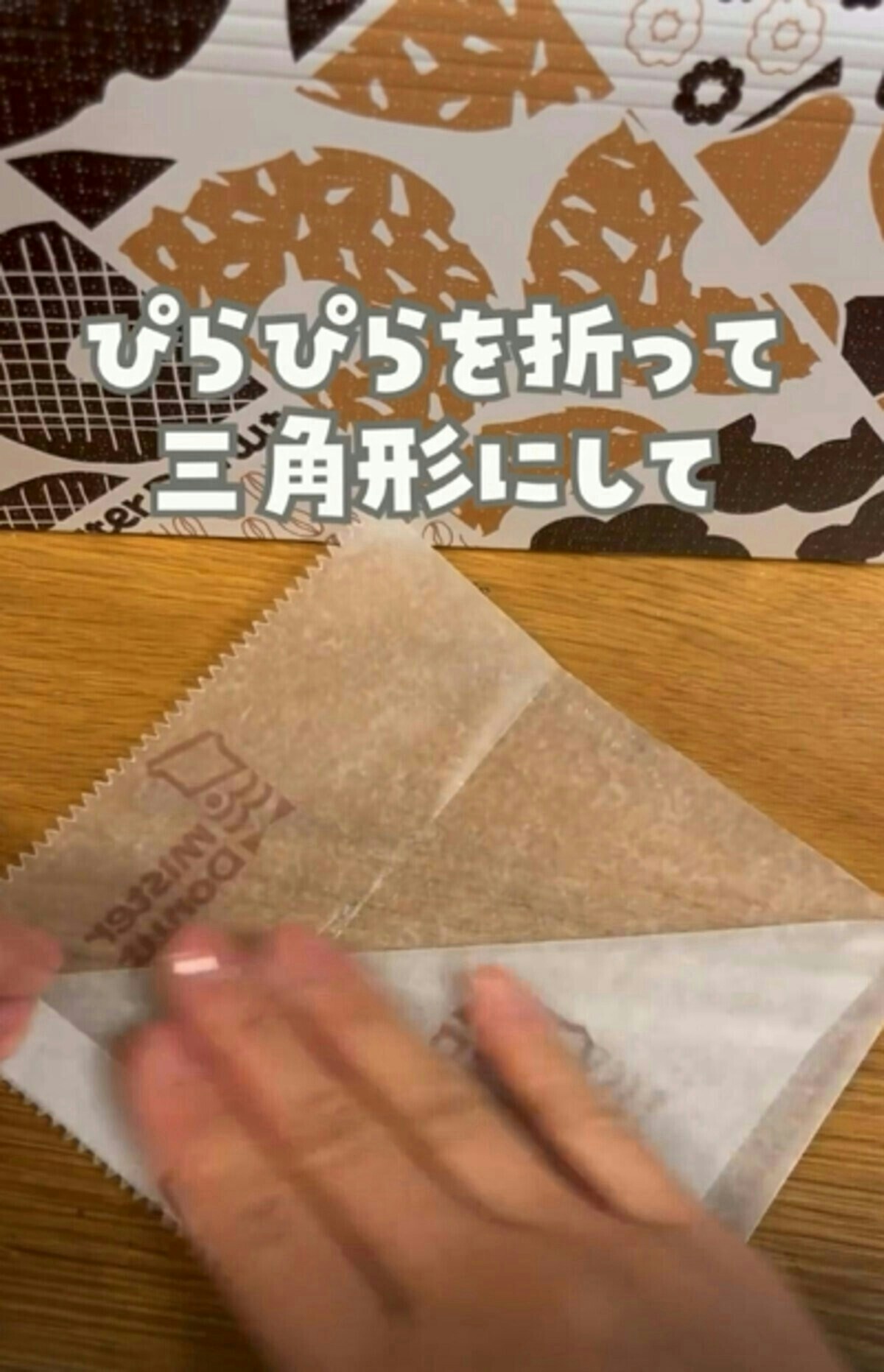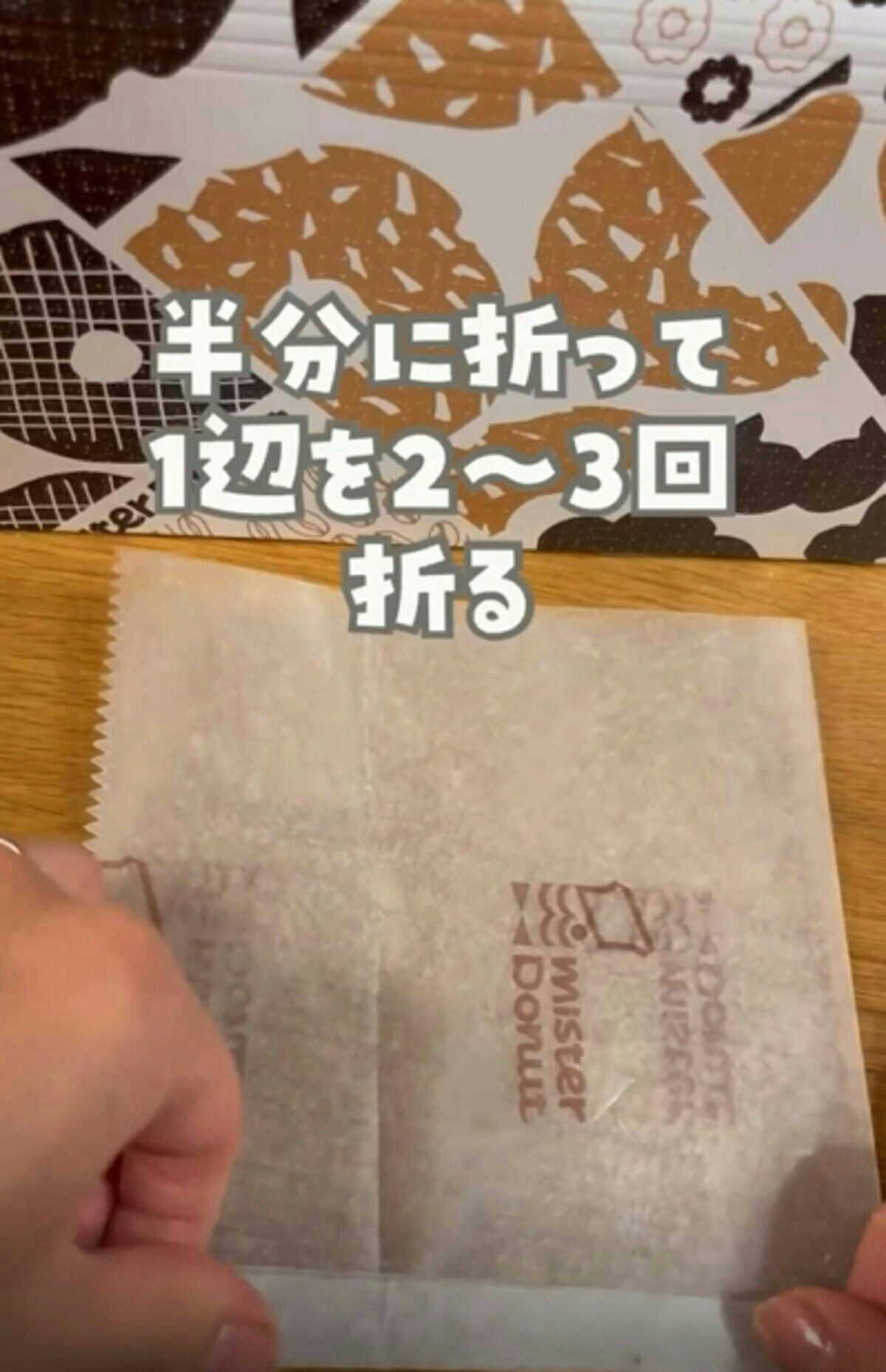 ミスタードーナツでドーナツを買うと、店員さんが一緒に付けてくれる半透明のナプキンを使います。