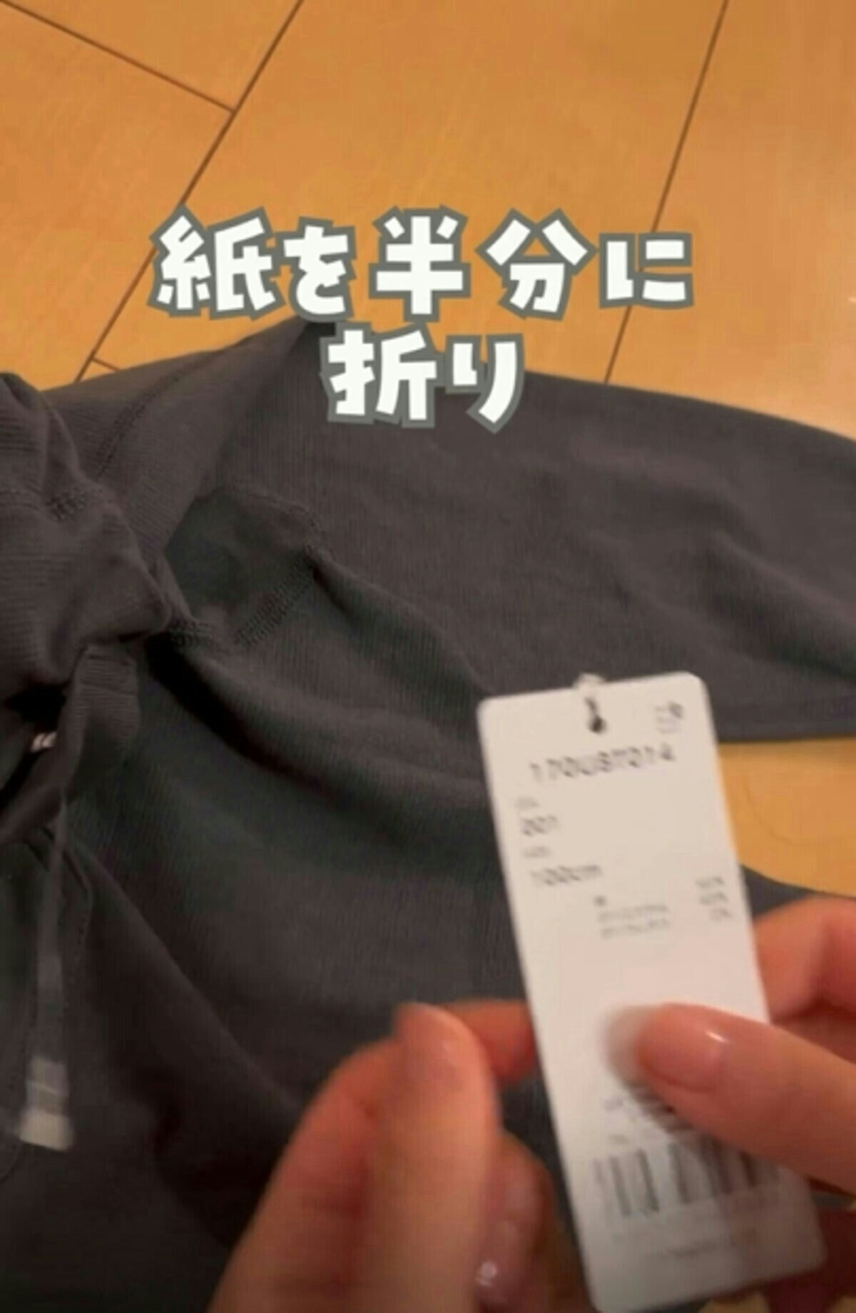 取り外したタグを半分に折ります。