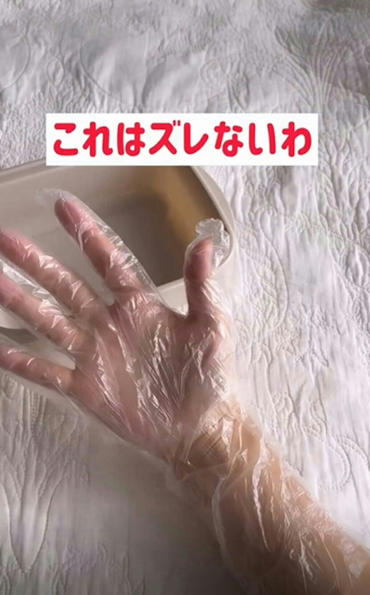 何かと使う頻度の多い、使い捨てのビニール手袋。今後、「引き伸ばすとずれ落ちない」ことを頭に置いておきましょう。引っ張りすぎてやぶれないようにご注意くださいね。