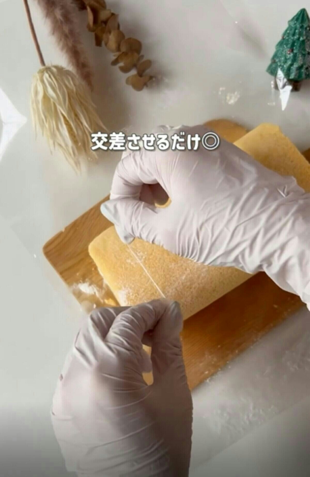 ケーキを傷付けないように、乾燥しないように、巻かれているフィルム。
