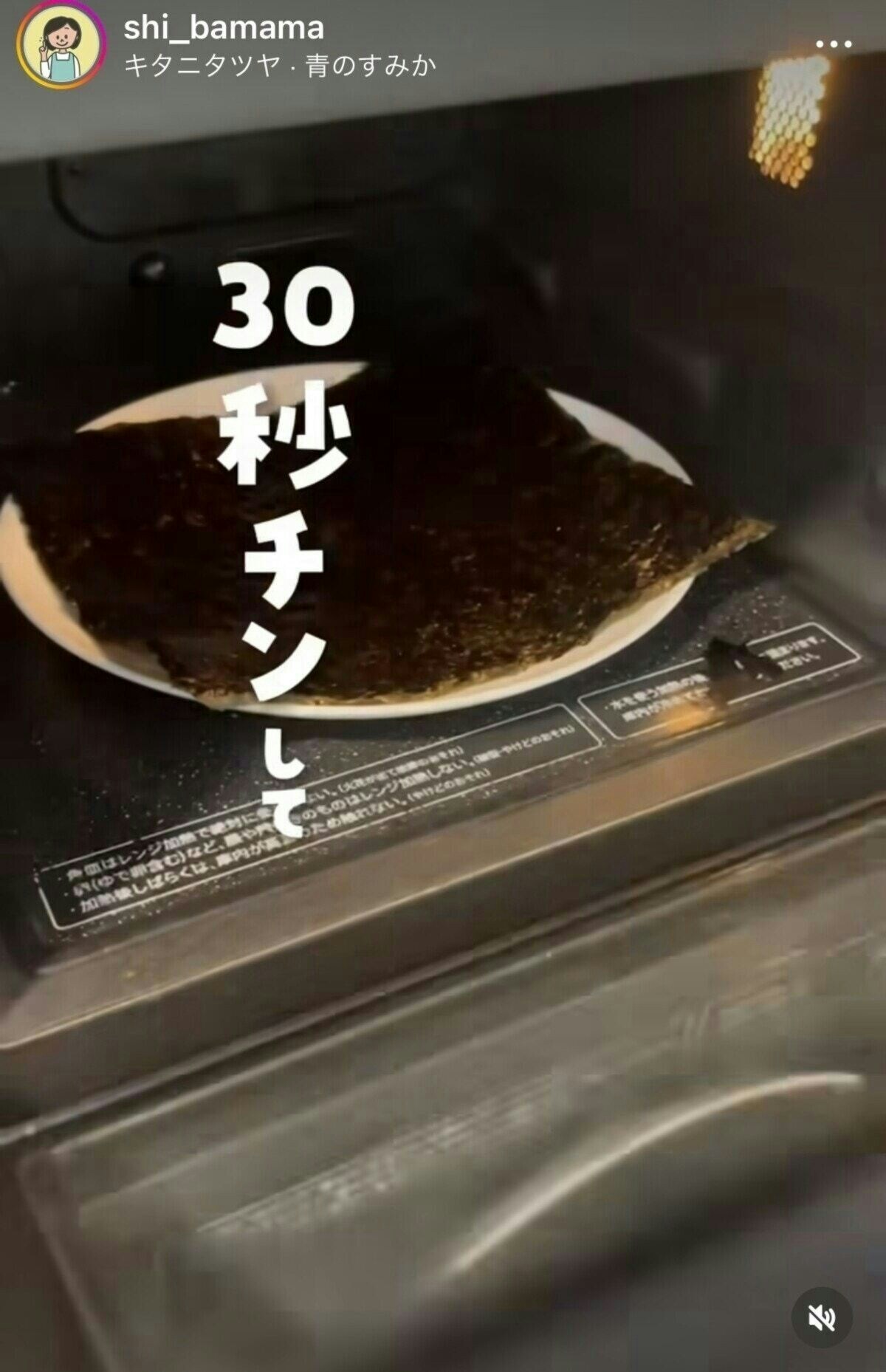 海苔の様子を見て、湿気が残っていそうなら10秒足して加熱してください。