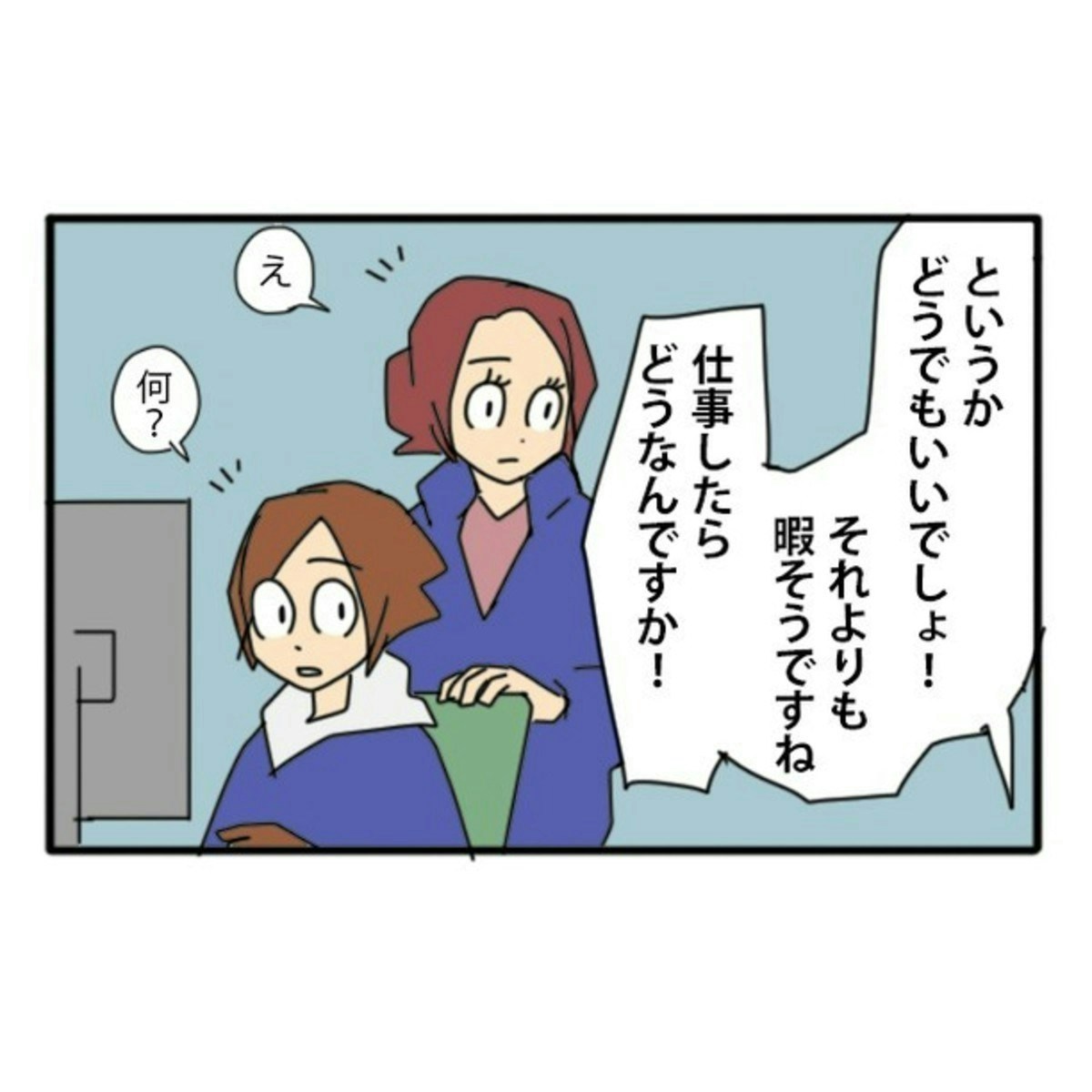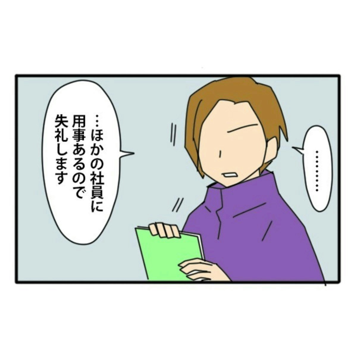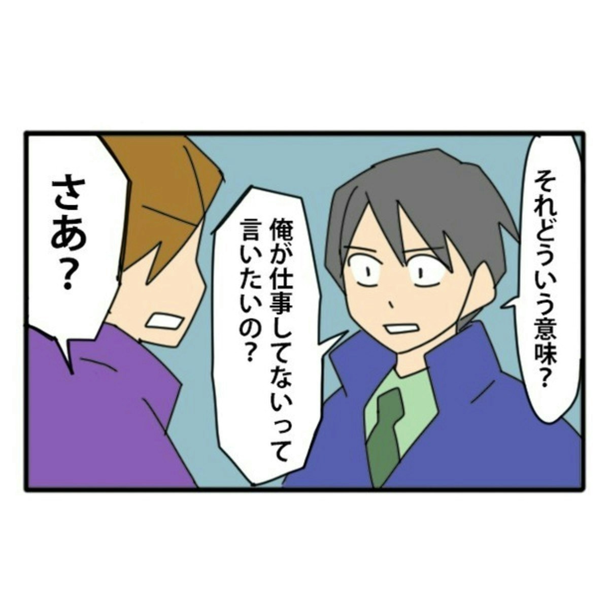 先輩さんに不満を一方的にぶつけるアルバイトスタッフ…。それに対し、先輩さんは冷静に対応しようとしますが、アルバイトは「辞めてもいいんですよ?」と、まるで脅しのような文句を吐き捨てます。このあと、課長と他の社員が制止に入り、この場は収まりました。