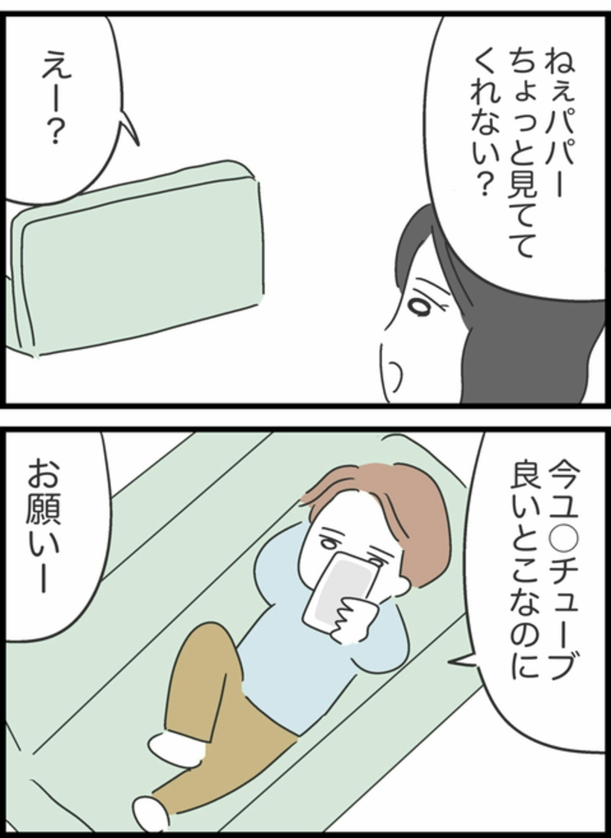 主人公・ようこは、育児をまったくしない夫に悩まされています。家にいるときは、「仕事で疲れている」を言い訳に、好きなだけゴロゴロ過ごしています…。
