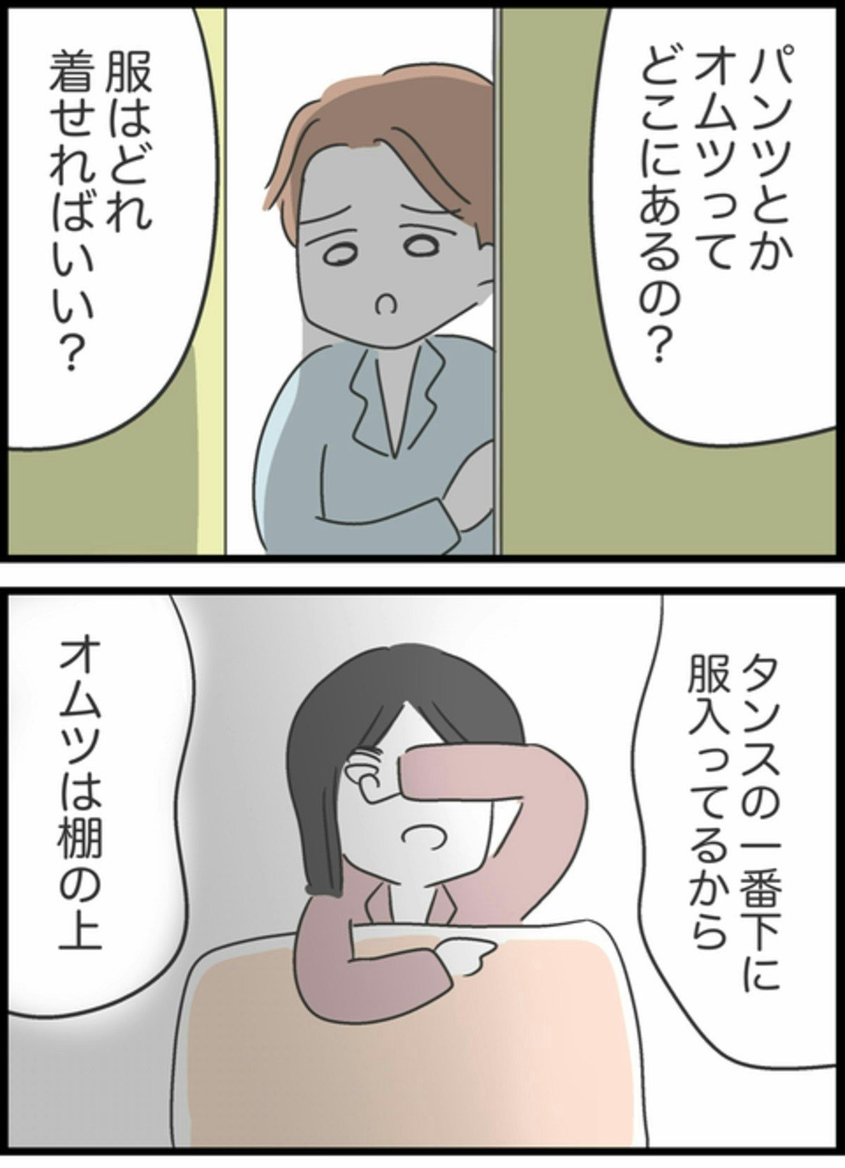 息子・ゆうたの子育てにあまり関わってこなかった夫・しょうた。そのため、ようこが熱で休んでいるにも関わらず、出かける準備もできません。