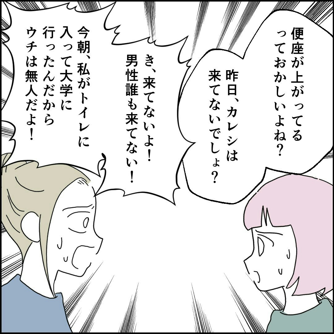 一人暮らしの女性の部屋で、トイレの便座があがっているなんて、ありえないです。ゾッとします…。