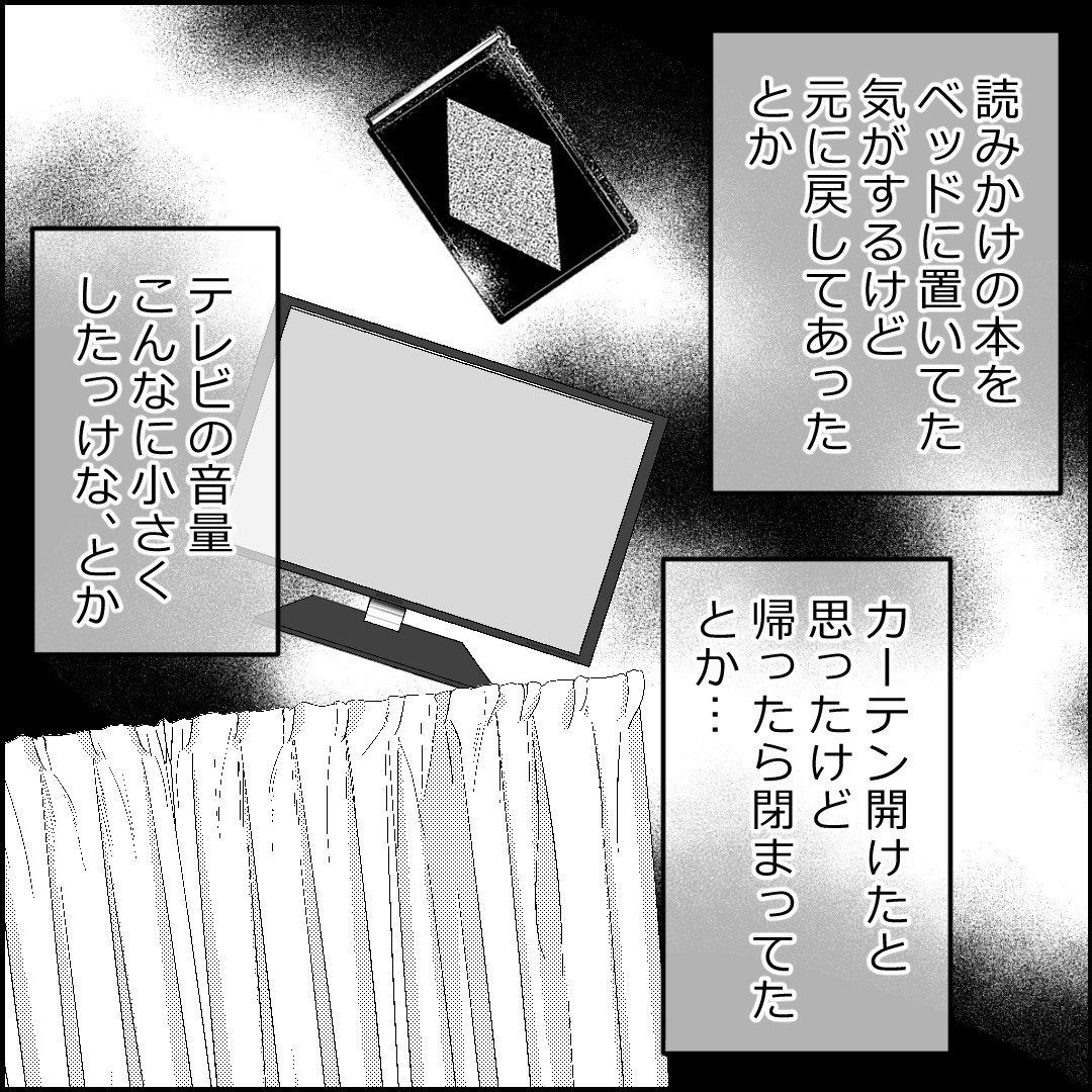 ある日を境に、自分の部屋で違和感を覚えるようになったレイ。たしかに、ささいなことばかりですが、こんなに続くと不気味ですね。