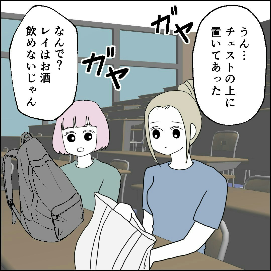 話しを聞いた友人・エルが、大学の帰りにレイの部屋に立ち寄ってくれます。部屋に入ってすぐ、お手洗いに行ったエル。ですがエルは、慌てた様子ですぐに出てきました。エルが目撃した光景とは…。