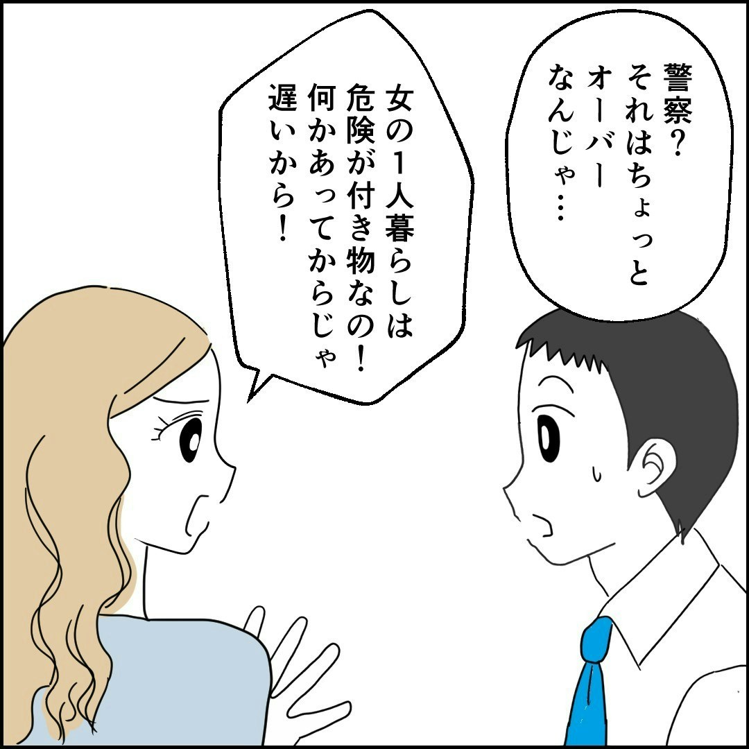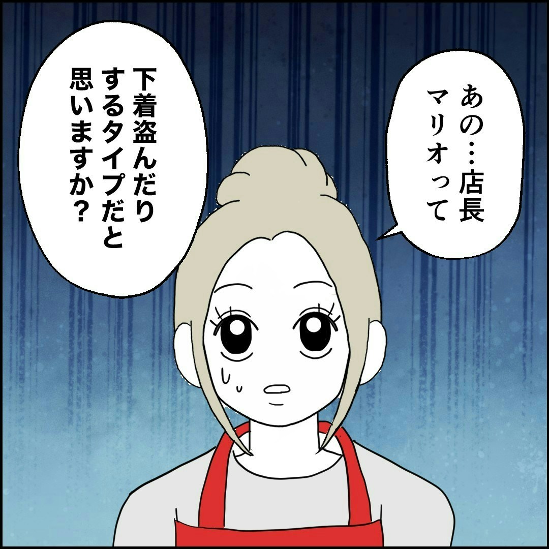 レイは思い切って、バイト先の店長に相談します。元カレとは、このバイト先で知り合ったため、店長もよく知っている人物です。部屋に上げたことのある男性は元カレしかいないため、レイは疑っています。レイの質問に困惑しつつも、一通り話を聞いた店長は、「探りをいれてみる」と言ってくれたのです。